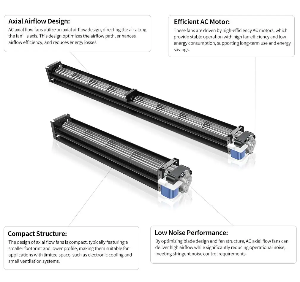 * noise-sensitive environments.High energy efficiency: It delivers significant airflow with low power consumption, offering