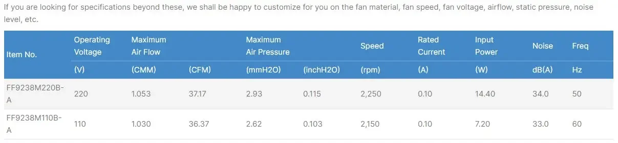 If you look beyond our current fan specifications, we shall be happy to customize for you.