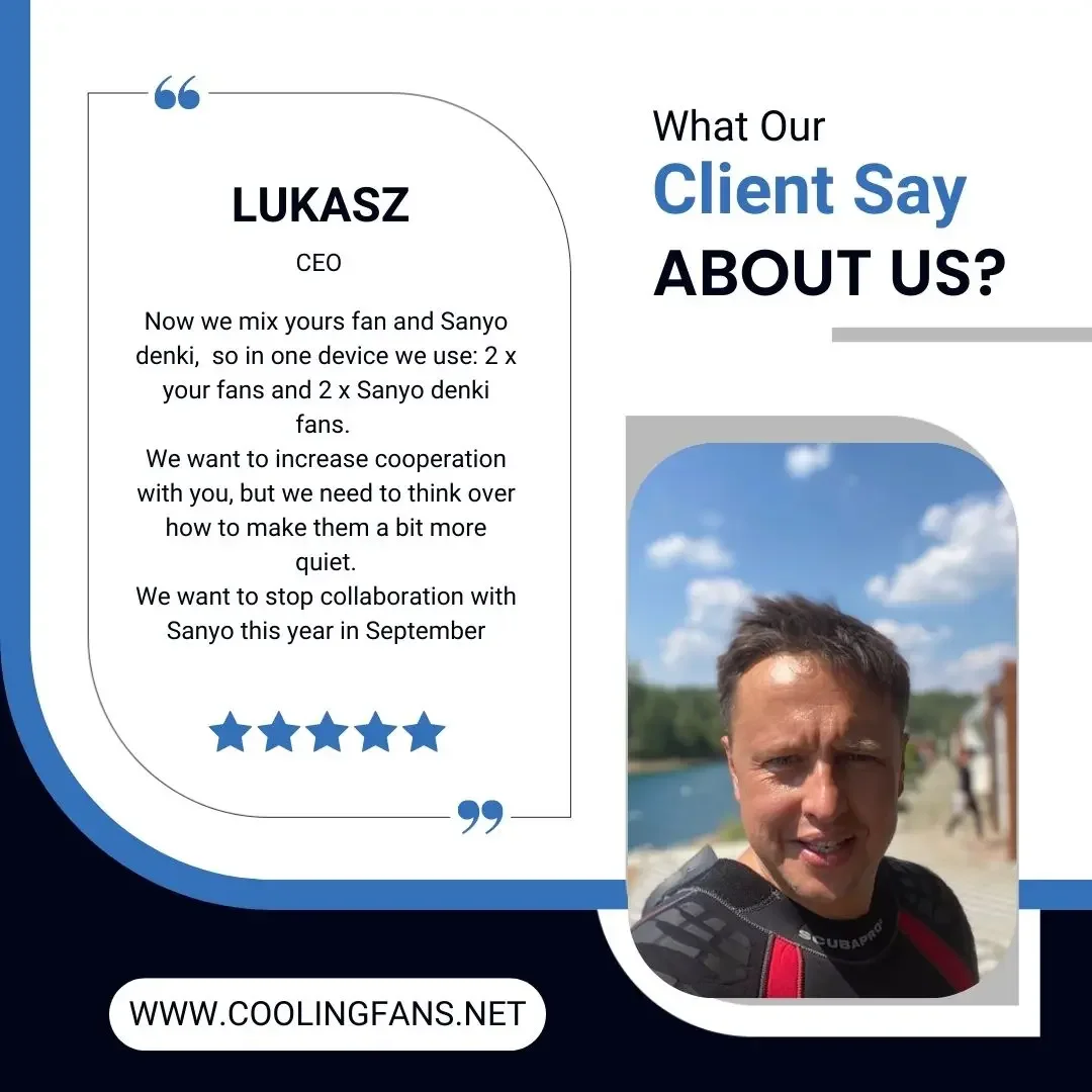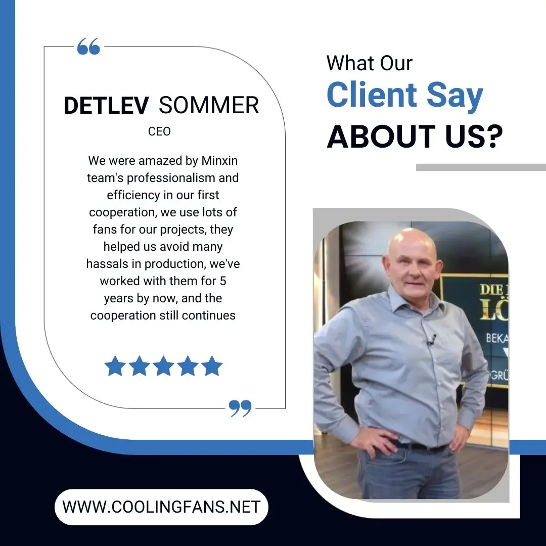A: It is IP53 rating by default, but if you are using it in a high humidity environment, we will have to add a procedure in production of this cooling fan to make it weatherproof, IP67 rating or even IP68 rating, you name it.