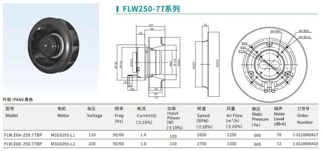 133-500mm EC 110V/230V plastic telecom backward centrifugal blower fan high pressure EC centrifugal fan