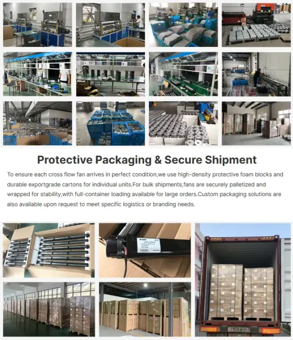 Our extensive product range includes centrifugal fans,axial fans,cross-flow fans,forward curved blowers,and ECM motors widely used in AHUs,FFUs,purifiers,heating systems,and industrial ventilation.We are certified to ISO9001,ISO14001,BSCI, CE,UL/ETL,FCC,and RoHS standards,ensuring full compliance across global markets.