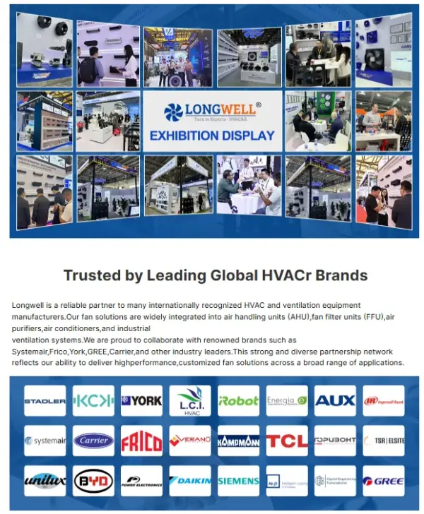 Longwell actively showcases its HVAC fan innovations at leading international exhibitions,reinforcing our global presence and customer trust.From the AHR Expo in the USA to MCE in Milan,ISH China & CIHE,HARFK Korea,and Chillventa in Germany,we engage directly with industry professionals to present efficient airflow solutions. Our participation in events like Interclima (France),HVACR Expo Saudi,HVACR Vietnam,and the Canton Fair highlights our ongoing commitment to serving global HVACR markets with customized and high-performance fan systems.