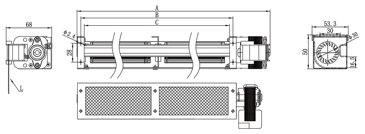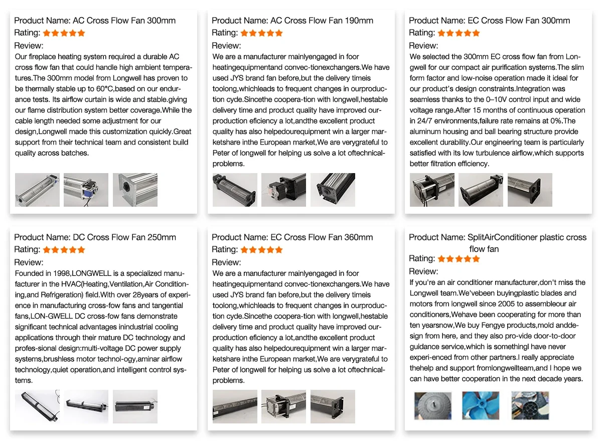 LONGWELL Cross Flow Fan 30mm-150mm 230V 2200RPM AC Motor High Power Tangential Fan Custom Air Conditioning Fan