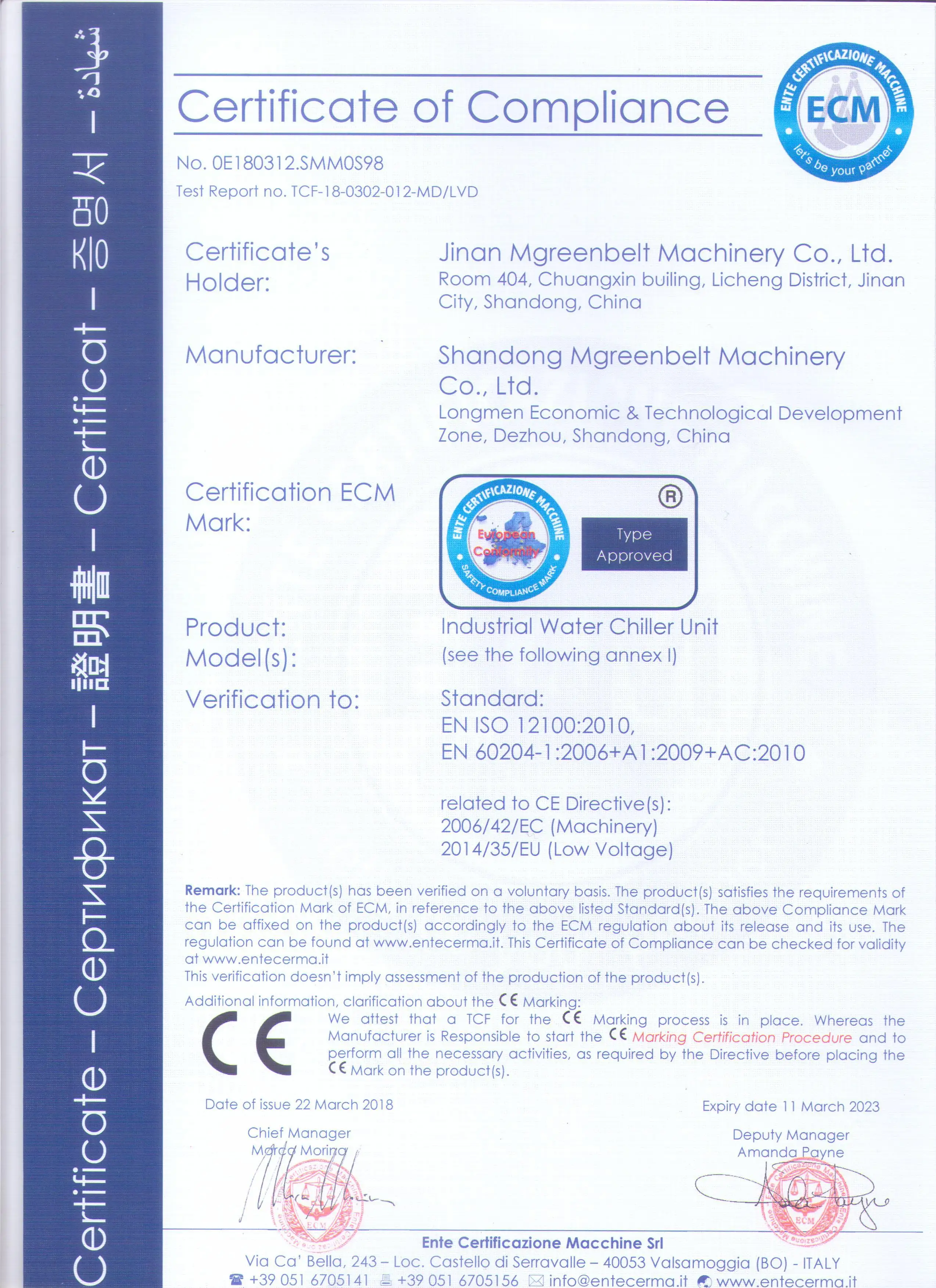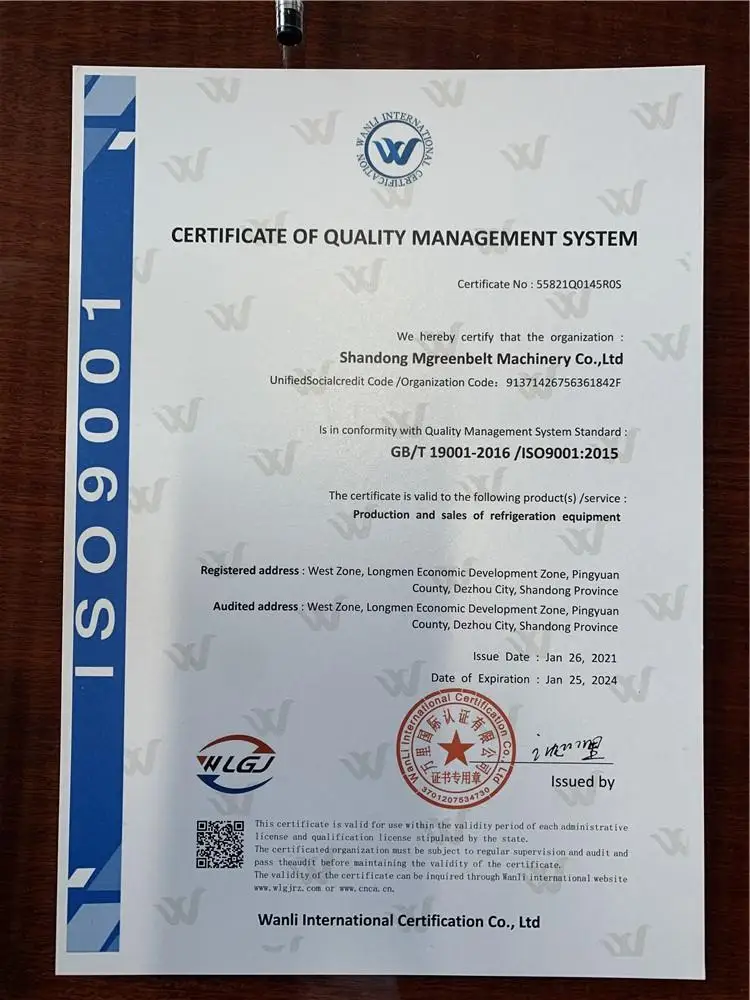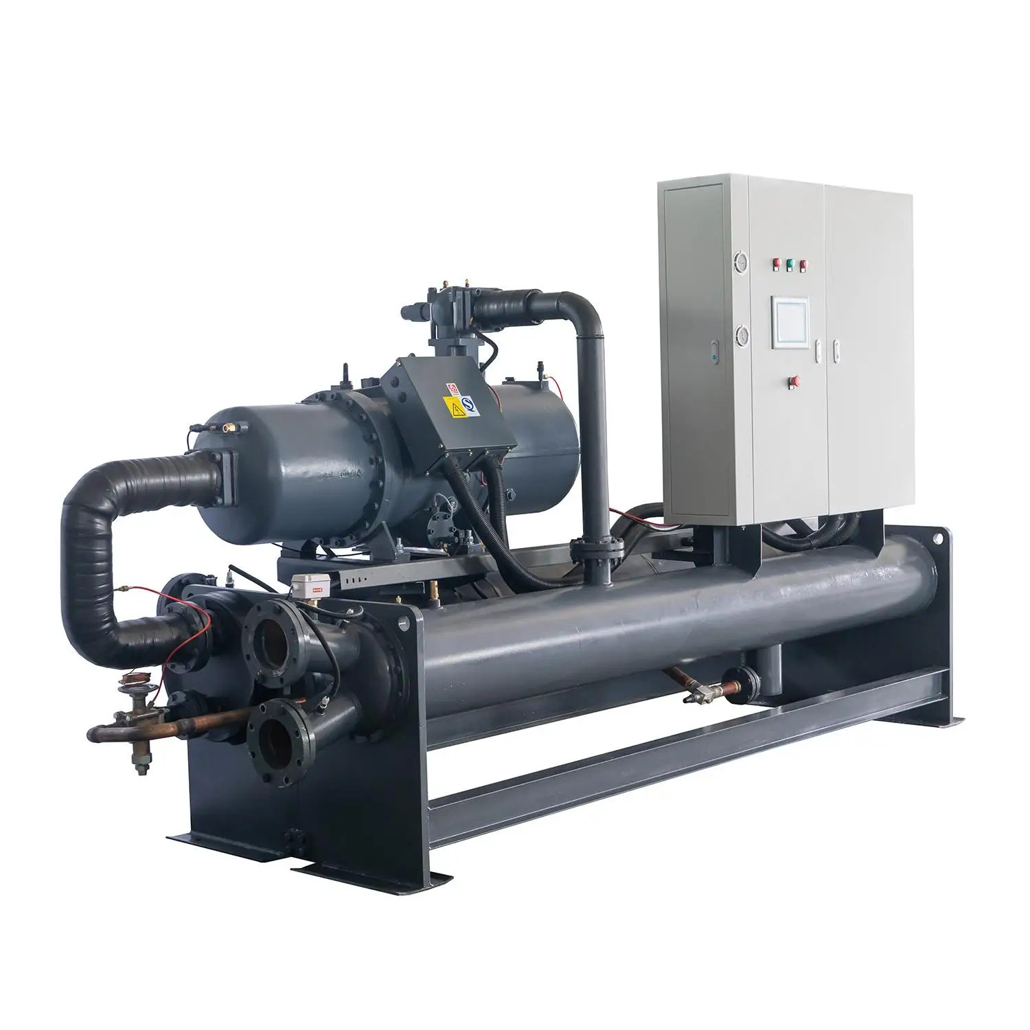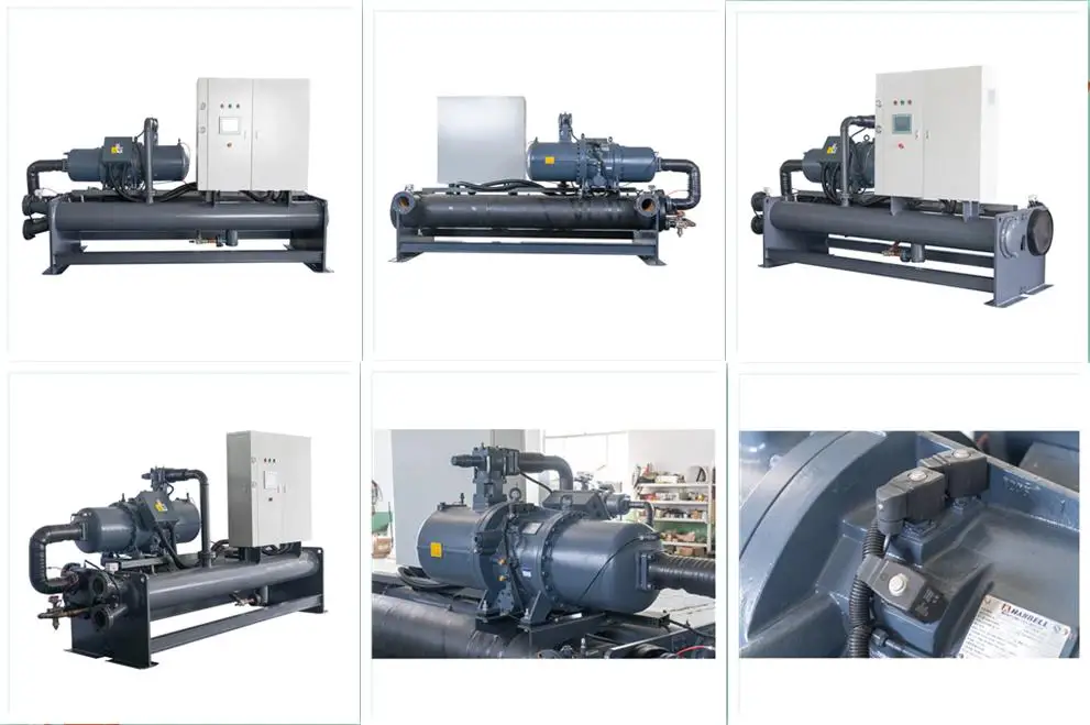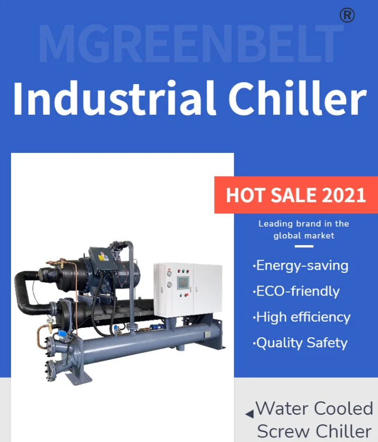 MGREENBELT is your industrial water chiller manufacturing company since 2003, we have our own research and development department with 18 years experience. As a leading water-cooled screw chiller manufacturer with decades years of experience since 2003, MGREENBELT provides a complete range of water-cooled screw chiller from the MG-WS series. The cooling capacity of water-cooled screw chiller is from 20Ton to 400Ton/78KW to 1400KW and the chiller temperature control range from +30℃ to -30℃. Besides the standard water-cooled screw chiller control temperature from 7℃ to 30℃, MGREENBELT also has another type water-cooled screw chiller control temperature below zero from 0℃ to -30℃ for some special industrial applications. This kind of water-cooled screw chiller using glycol and water mixture as the coolant. High-quality water cooled screw chiller manufactured by MGREENBELT features some outstanding advantages as below: 1. The screw compressor inside of our water-cooled screw chiller will reduce compressor speed and increase efficiency as much as 40 percent – Strike the right balance between capital cost, ownership cost, and energy efficiency by tailoring and tuning configurations. 2. Flexibility – The MG-WS water-cooled screw chiller is capable of handling the high pressures associated with ice thermal storage or heat pump applications with the highest available efficiencies. 3. Smaller environmental footprint – The newly designed water cooled screw chiller will reduce the refrigerant charge up to 20 percent and utility emissions as much as 20 percent. 4.Dry shell and tube evaporator
