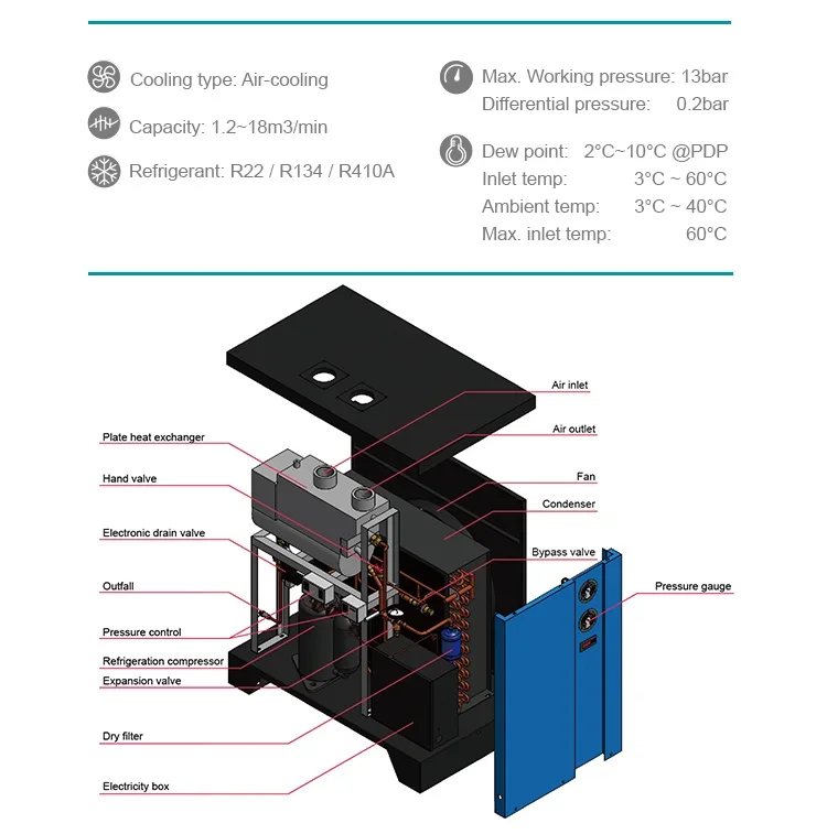 ◆ Made from durable aluminum alloy, the plate refrigerated air dryer is designed for both efficiency and environmental impact.