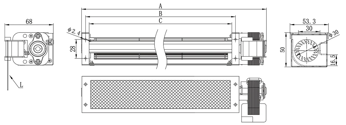 LONGWELL Cross Flow Fan 30mm-150mm 230V 2200RPM AC Motor High Power Tangential Fan Custom Air Conditioning Fan