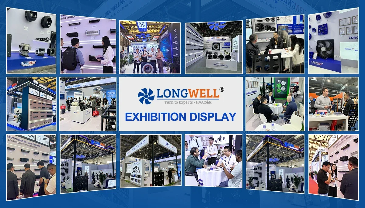 Longwell actively showcases its HVAC fan innovations at leading international exhibitions,reinforcing our global presence and customer trust.From the AHR Expo in the USA to MCE in Milan,ISH China & CIHE,HARFK Korea,and Chillventa in Germany,we engage directly with industry professionals to present efficient airflow solutions. Our participation in events like Interclima (France),HVACR Expo Saudi,HVACR Vietnam,and the Canton Fair highlights our ongoing commitment to serving global HVACR markets with customized and high-performance fan systems.