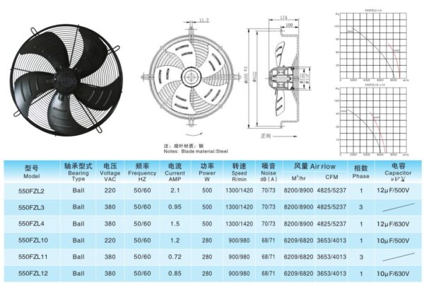 Be the first to review “AC Duct Axial Flow Ventilation Fan with Ball Bearing and Steel Blades Electric 220V-380V OEM/ODM Customizable 550FZL”
