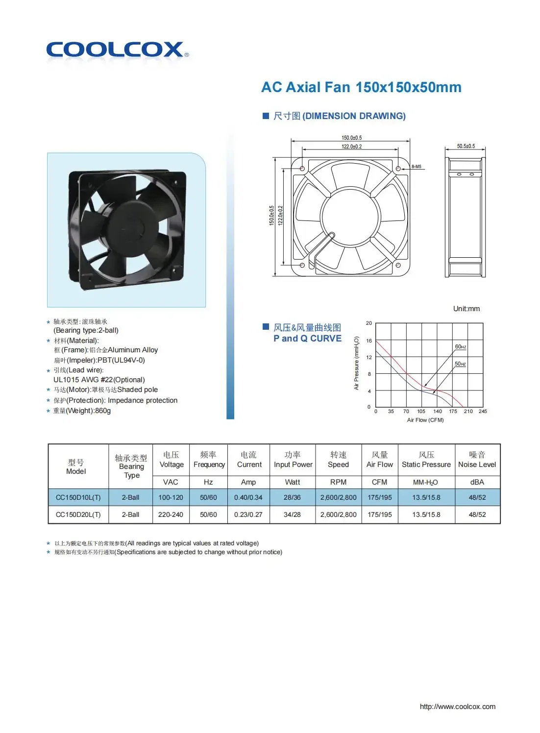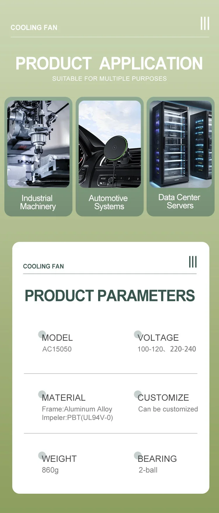 Bearing type: 2-Ball Material: Frame: Aluminum Alloy Impeller: PBT(UL94V-0)