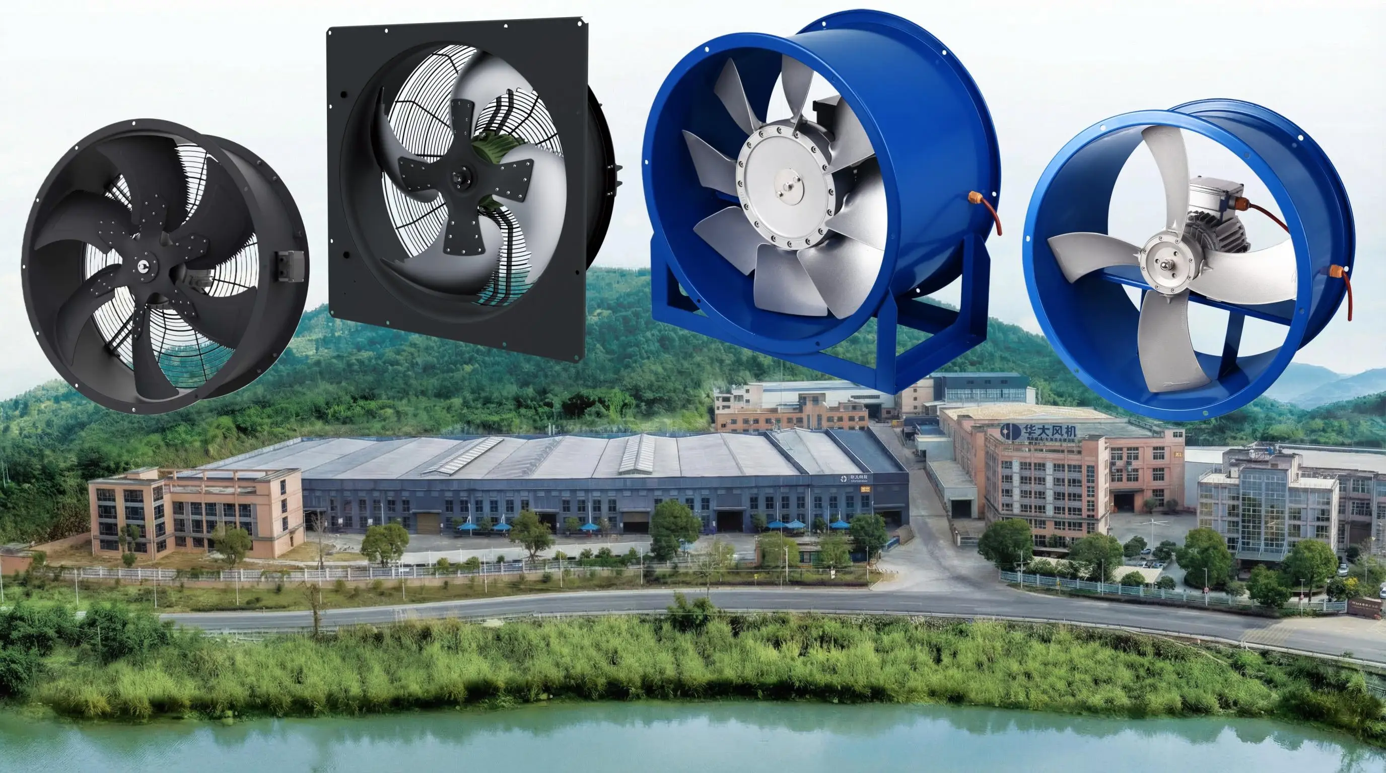 Since the frame size and the blades diameter are different,the installation angle of the blades,speed of main shaft is different.Air flow,air pressure and motor output are different.The air pressure from 60Pa to 400Pa,the air flow from 1000 cbm/h to 60000cbm/h.(details as per performance table).