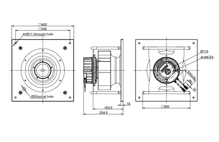 EC Backward Curved Centrifugal Fan Air Performance and Outline Drawing