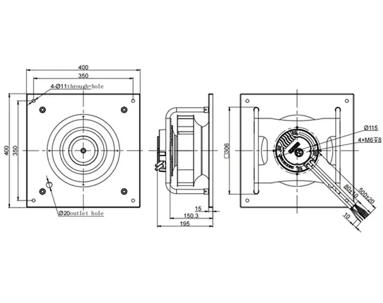 EC Backward Curved Centrifugal Fan Air Performance and Outline Drawing