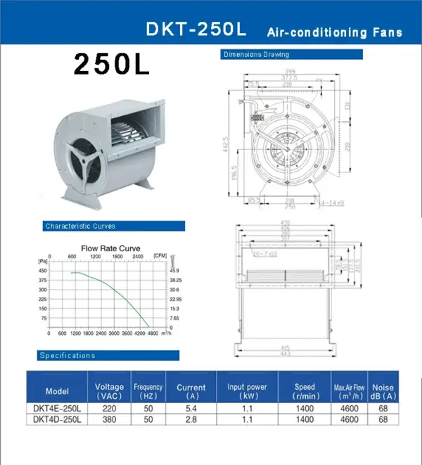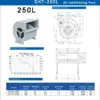 This 250mm dual-inlet centrifugal fan, equipped with a 1.1KW industrial-grade motor and efficient dual-inlet design, generates substantial, stable, medium-to-high pressure airflow. It significantly enhances system energy efficiency while markedly reducing operational noise and vibration, making it the ideal choice for replacing outdated fans or equipping new projects.