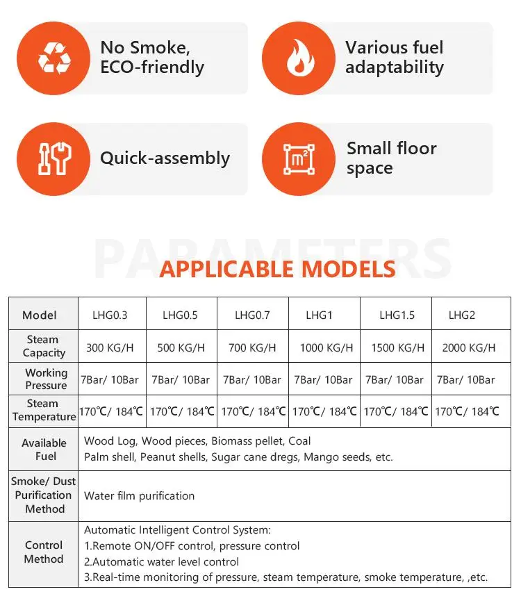 Please let us know your required steam capacity, working pressure or steam temperature, fuel type. Then our sales-engineer will send you the detailed and exact offer.