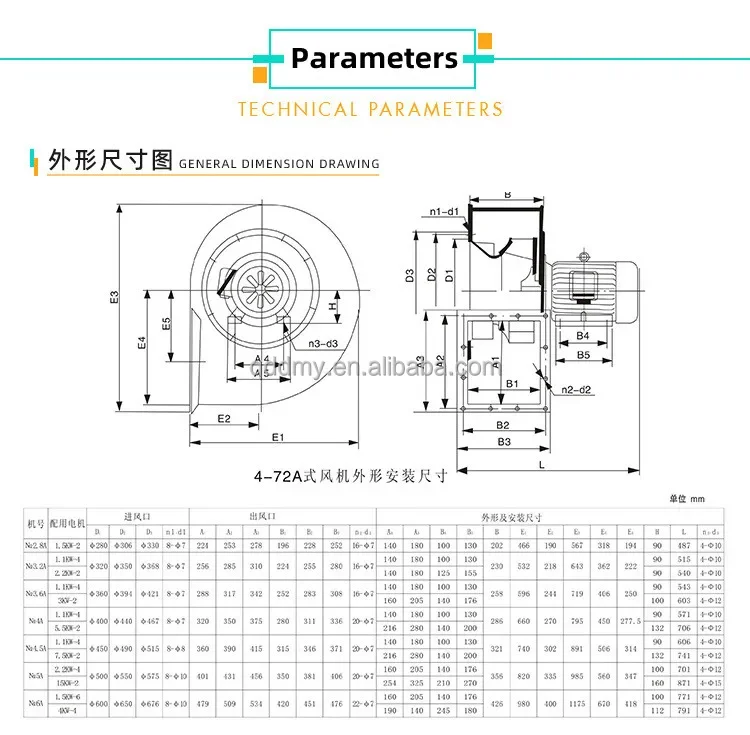 4-72 type centrifugal fan,motor adopts the design of high temperature resistant,possessing the advantages of resistance to high temperature and high humidity: