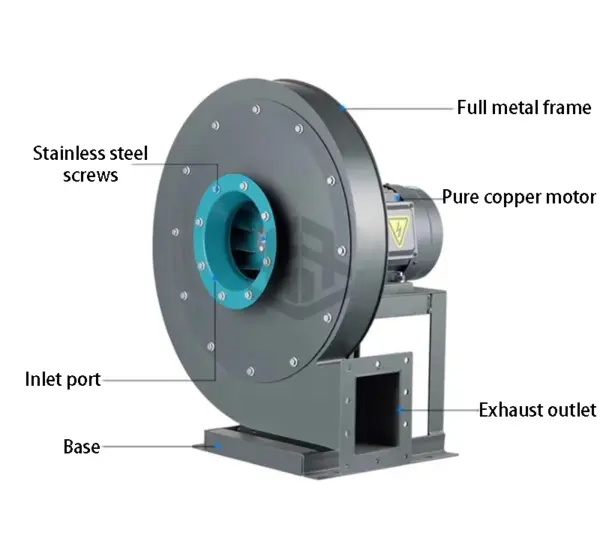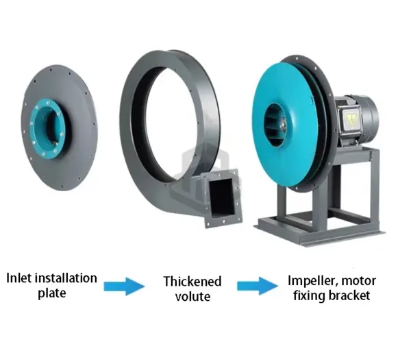 High pressure, low vibration. Laser cutting enables significant improvement in product accuracy and a sleek, elegant appearance. The motor uses the YE series high-efficiency energy-saving motor, featuring high efficiency, low energy consumption, good quality and long lifespan. It is widely used for transporting materials, air and non-corrosive, non-flammable, non-burning and non-viscous gases. It is particularly suitable for high-pressure forced ventilation in general industries such as exercise, glass, ceramics, radio, electroplating, batteries, as well as material transportation in industries like grains, feed, mineral powder, plastics, chemicals, boilers. An optional high-temperature-resistant extended shaft motor is available, with a high-temperature resistance of 200℃.