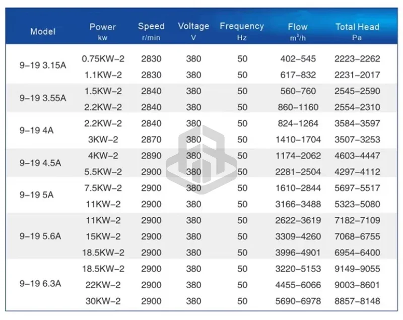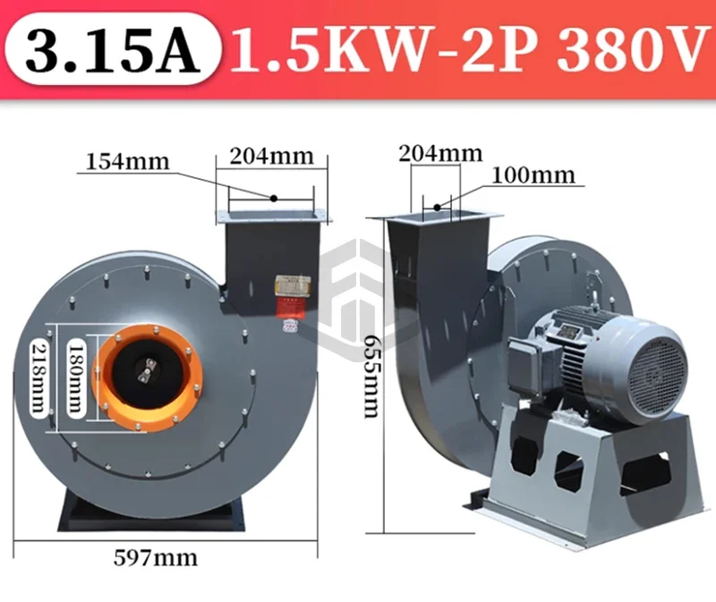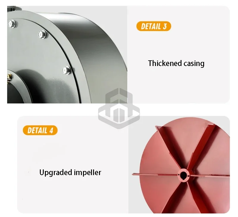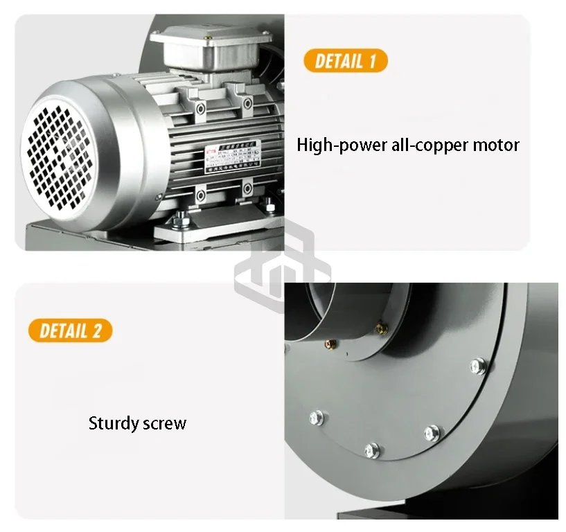 High pressure, low vibration. Laser cutting enables significant improvement in product accuracy and a sleek, elegant appearance. The motor uses the YE series high-efficiency energy-saving motor, featuring high efficiency, low energy consumption, good quality and long lifespan. It is widely used for transporting materials, air and non-corrosive, non-flammable, non-burning and non-viscous gases. It is particularly suitable for high-pressure forced ventilation in general industries such as exercise, glass, ceramics, radio, electroplating, batteries, as well as material transportation in industries like grains, feed, mineral powder, plastics, chemicals, boilers. An optional high-temperature-resistant extended shaft motor is available, with a high-temperature resistance of 200℃.