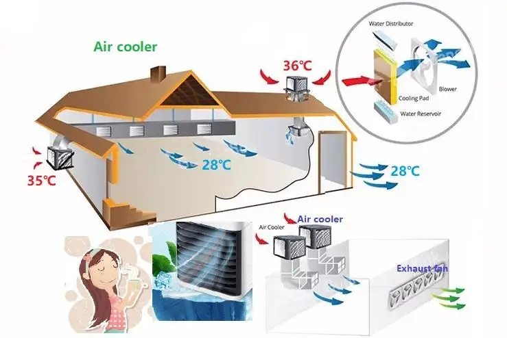 hot sale OEM ODM Wall Rooftop Mounted air water cooler fan large air flow 25K CMH Evaporative Air Cooler industrial