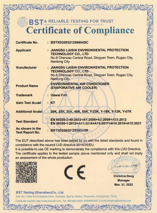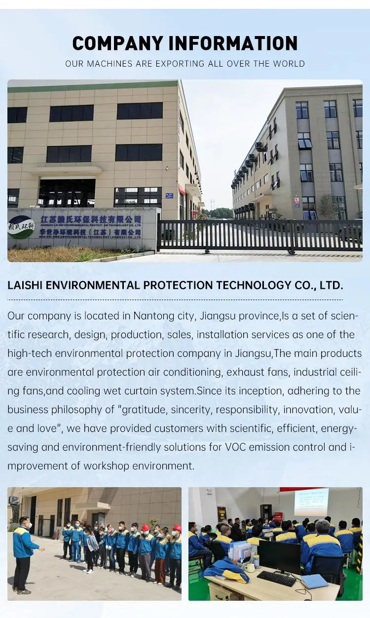 Q1: Is your company a manufacturer or a trading company? A: We are manufacturers, we have own trade company, we also have our own factory and design, sales team. Q2: Can I be your agent? A: Yes, welcome to deep cooperation. We have big promotion of LAISHI brand in the market now. For the details please contact with our overseas manager. Q3: What is the minimum order quantity? A: Usually, MOQ of exhaust fan, industrial ceiling fan, environmental protection air conditioner and air cooler is 10 sets. Small quantity we also can do, but the cost will be high. Q4: How to get samples to check the quality? How long can I get the samples? A: After the price is confirmed, samples can be provided for your evaluation, after confirming the sample details, the samples will be ready for delivery within 3-7 days, and sent to you by courier, then arrive within 5-7days. Q5: What’s your quality guarantee? A: We will offer client one year quality guarantee time. Q6: Do you have a discount? A: we will do our best to provide you with these services at the best price and quality service. Q7: What venue is suitable for installing industrial fans? A: Generally used in large workshops, warehouses, logistics transfer centers, livestock farms, etc. Q8: What are the benefits of installing industrial fans? A: The diameter of the ceiling fan in the industrial plant can reach 7.3m, and its unique streamlined fan blade can push a large amount of air to the ground at a low speed, thereby forming a breeze airflow. The human body feels a cooling of 3-5 degrees, which is as comfortable as natural wind. The traditional small fan will feel dizzy after blowing it for a long time. The energy-saving industrial fan solves this problem well.