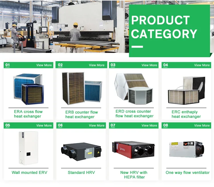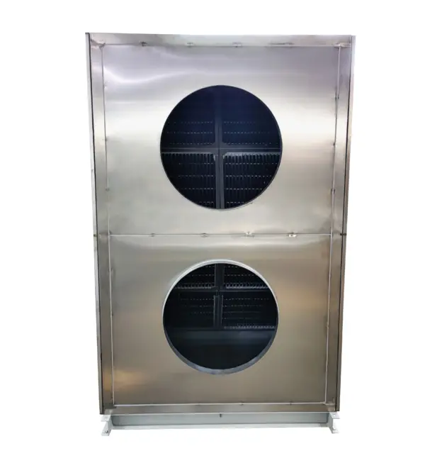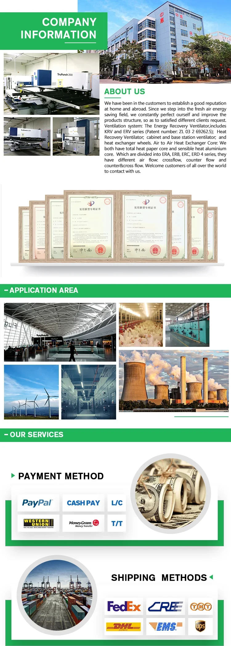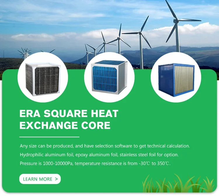 | The aluminum foil with high quality hydrophilic coating is used as the heat transfer conductor, which is processed by special process. It is characterized by high heat exchange efficiency, easy maintenance and long service life. Epoxy aluminum foil, corrosion resistance. suitable for special occasions; A great number of specifications and sizes and plate spacinq (2.5-12mm) to choose: Modular structure, can provide any size of the section and the combination of plate stack thick ness, no moving parts, equipment maintenance costs; Compact structure, small size, suitable for various occasions. |