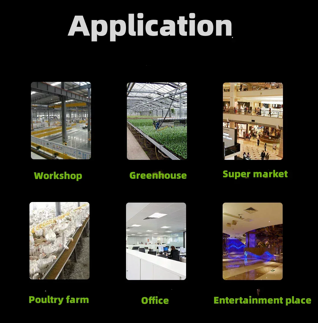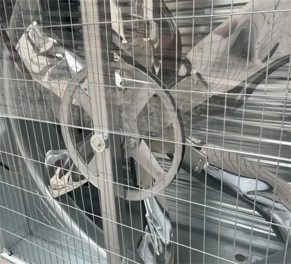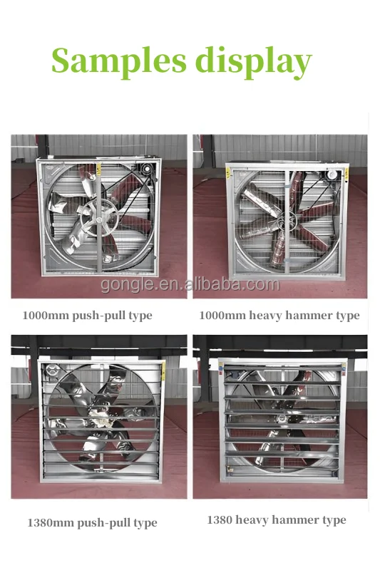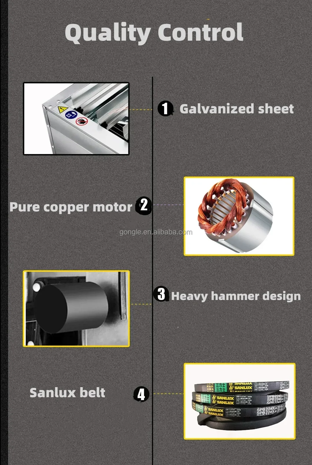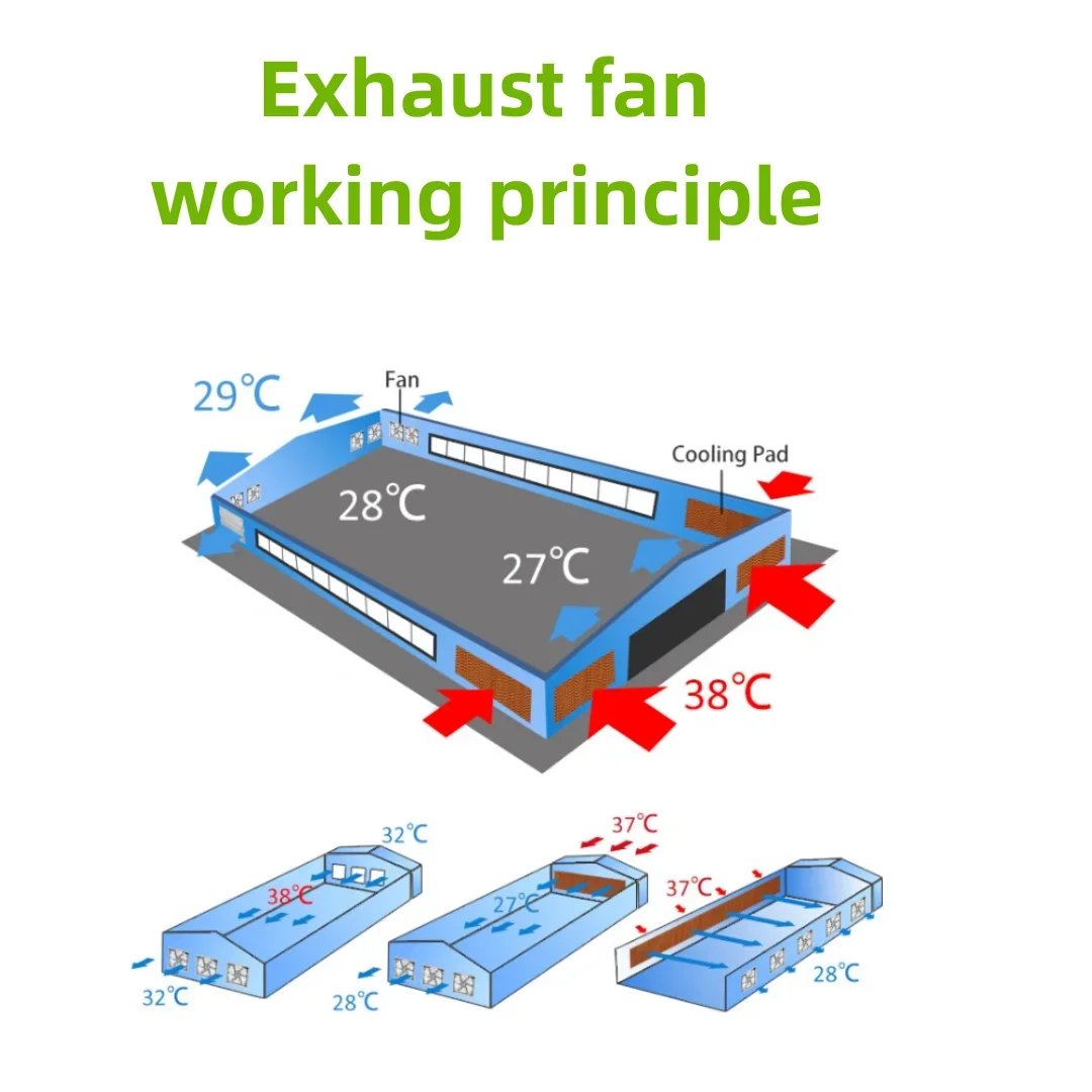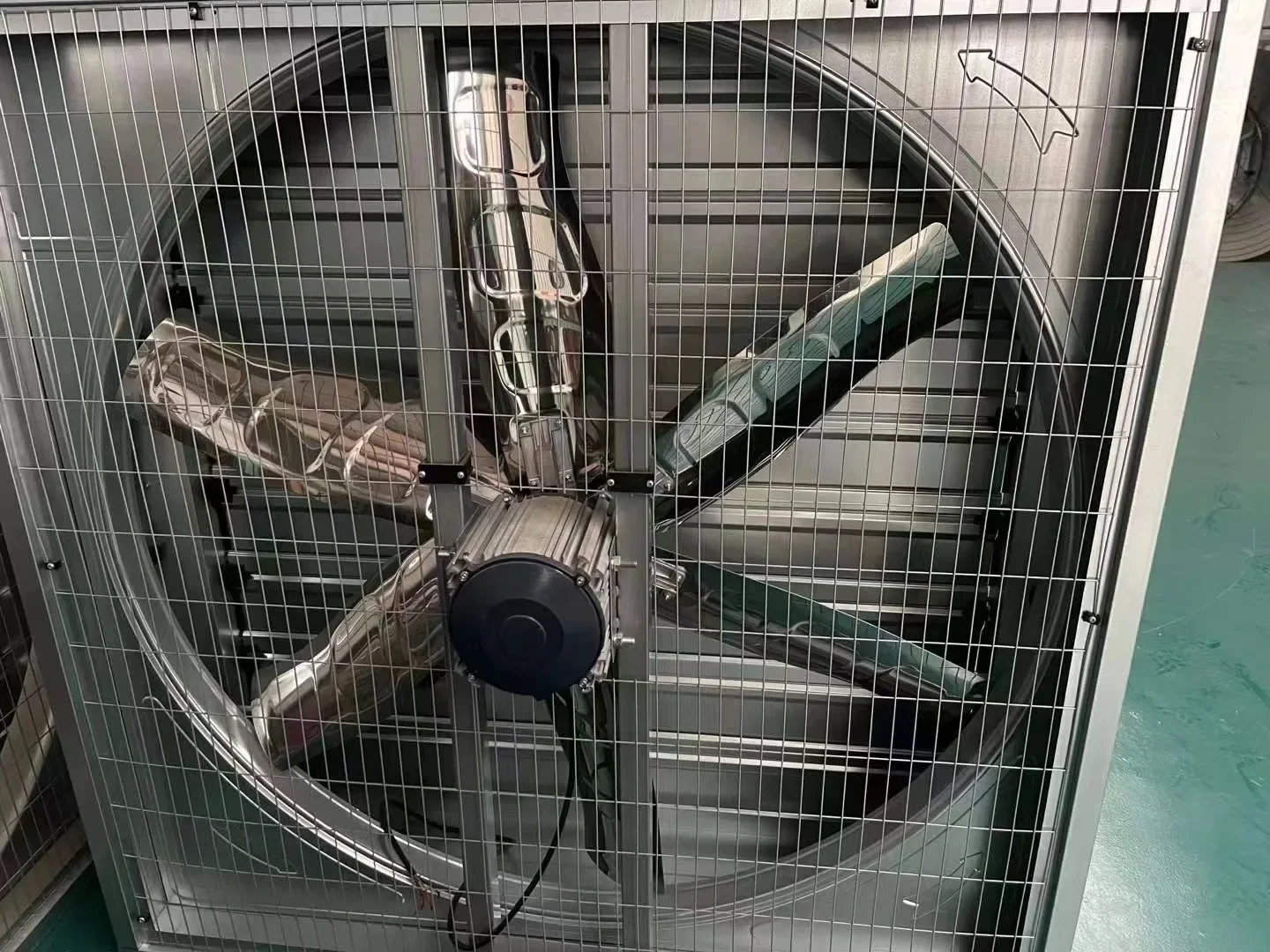 1. Drop hammer fan mainly consists of blade/motor/frame/protect net/bracing cage/shutters. The motor drives blade to cause air