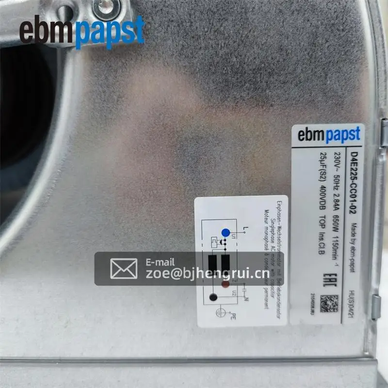 ebmpapst D4E225-CC01-02 230V AC 2.84A 650W 225mm HVAC Air Shower Purifier FFU Fan Filter Unit Centrifugal Cooling Fan