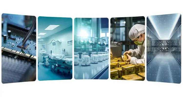 Widely used in electronic chip manufacturing, semiconductor production, operating rooms, sterile wards, pharmaceutical production workshops, food processing, precision instrument manufacturing, laboratories, aerospace, data centers, and more.