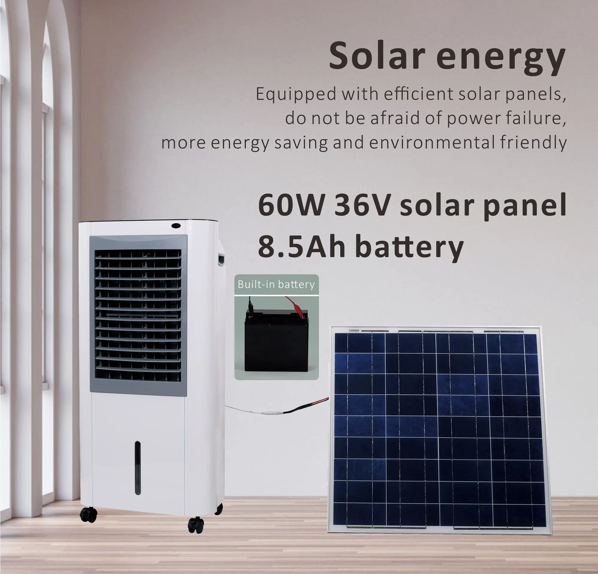 Energy Saving Solar Air Cooler 35W Strong Airflow Desert Solar Air Humidifying CoolerEnergy Saving Solar Air Cooler 35W Strong Airflow Desert Solar Air Humidifying Cooler