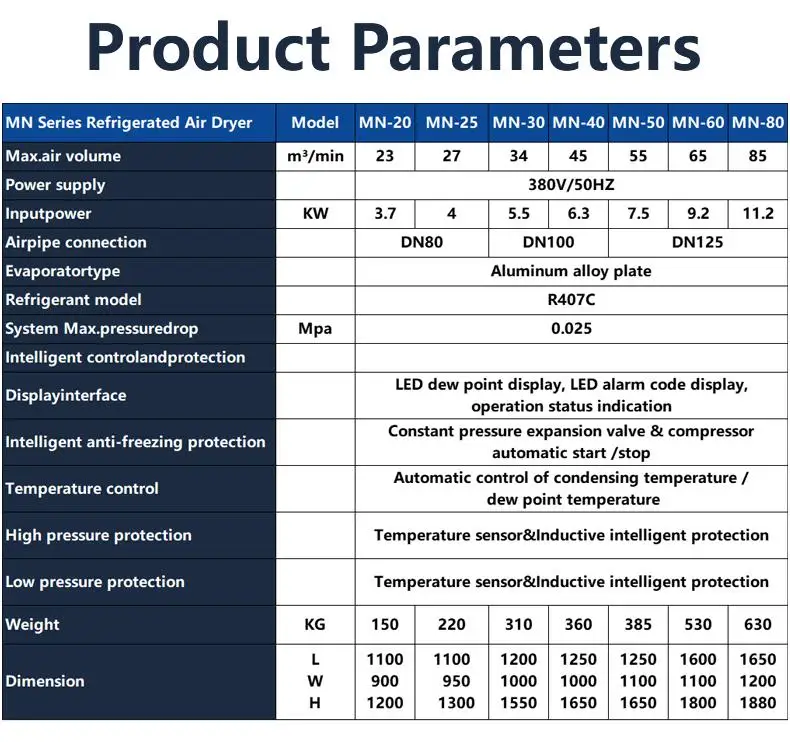 2. Customized cold dryer type, color and size.