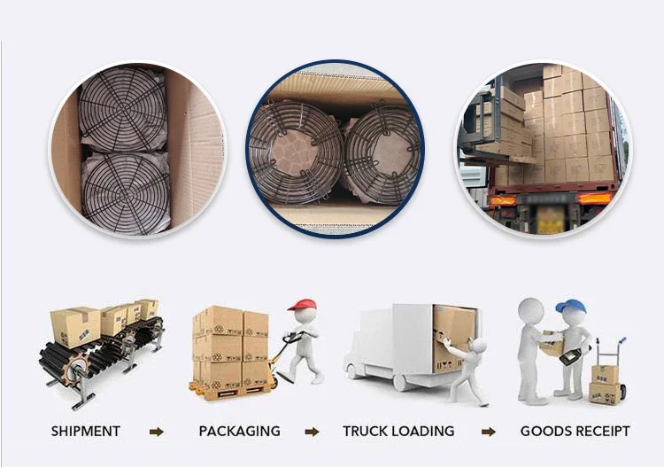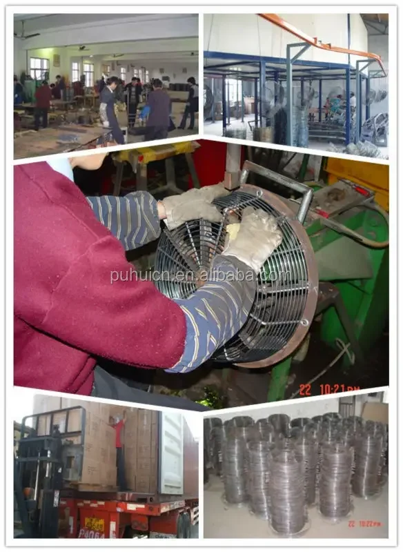 Production lines integrate wire drawing, assembly and completion of such surface treatment as plating, galvanizing, clear lacquer and coating. Our goods are suitable for HAVC (Heating, Ventilating and Air Conditioning), industry, household, and garden use. Such as fan guard, motor mount, grill, blade, flange,metal plate watering can, flower pot, bucket, trash incinerator bin and so on. Now goods are already exported to USA, Europe, Southeast Asia and other regions.