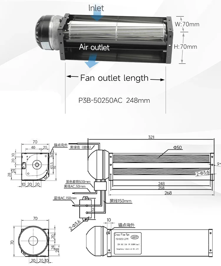 FANOVA Manufactory Wholesale OEM 50mm 220V Aluminum Cross Flow Fan Tangential BlowerFANOVA Manufactory Wholesale OEM 50mm 220V Aluminum Cross Flow Fan Tangential Blower