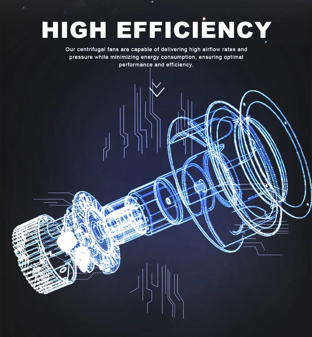 1. High Efficiency: Our centrifugal fans are capable of delivering high airflow rates and pressure while minimizing energy