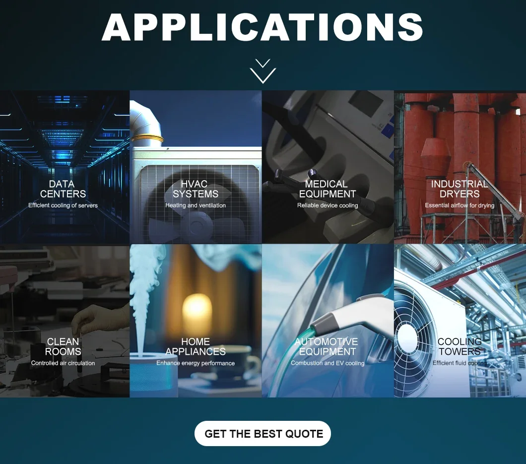 3. Wide Application Range: Suitable for a diverse range of industries and environments, including industrial ventilation, HVAC systems, agriculture, construction, automotive, and more, offering flexible customized solutions (OEM/ODM).