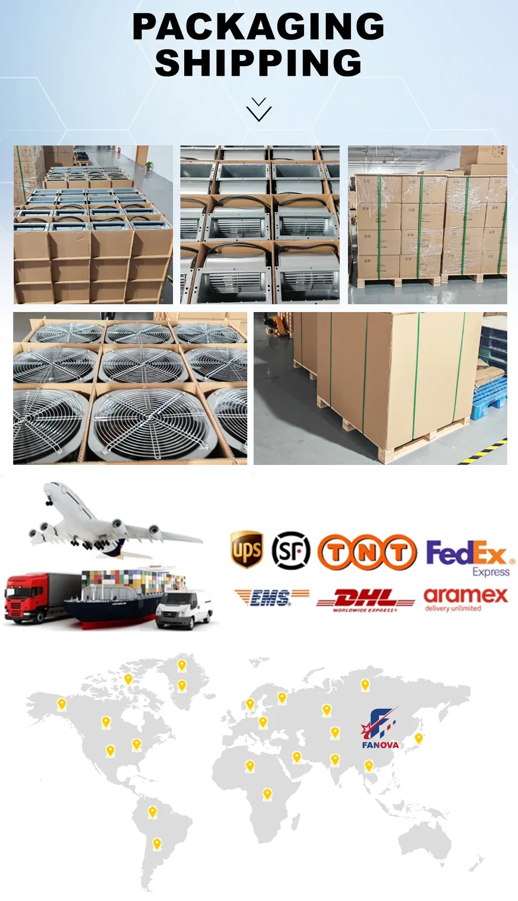 Q1:What kind of payments do you support? A1: By T/T,LC AT SIGHT,30% deposit in advance, balance 70% before shipment Q2.Will you provide samples? A2: Yes, samples can be delivered within 10days on request. Q3:How can I place the order? A3: We need the information like fan type, quantity, size, material, voltage, air flow and static pressure and usually quote you within 24 hours after we get your inquiry. First sign the PI,pay deposit,then we will arrange the production.After finished production need you pay balance. Finally we will ship the Goods. Q4:About transportation A4: All available shipping ways could be applied, express shipping, air or sea. Appointed shipping company or our own forwarders all could be used in shipment. Full-way tracking the cargos for you before the goods arrive. Q5:After-sales service A5: We will provide professional after-sales service, patiently answer customers’ various problems to ensure the normal operation of products .