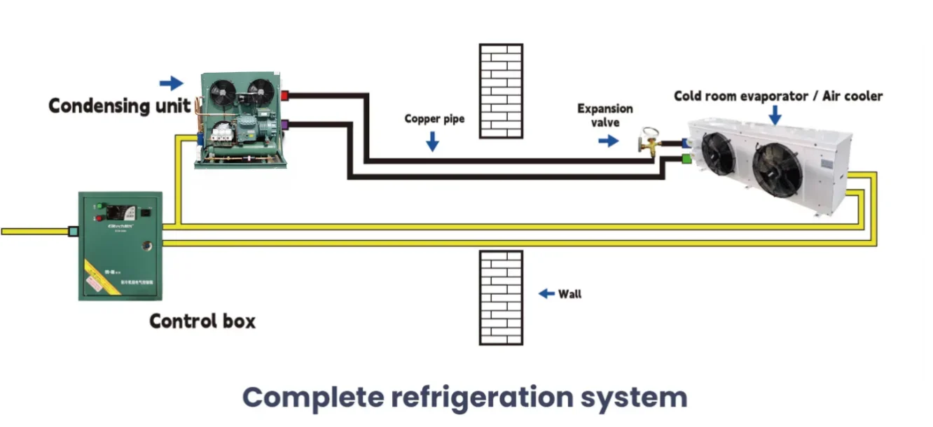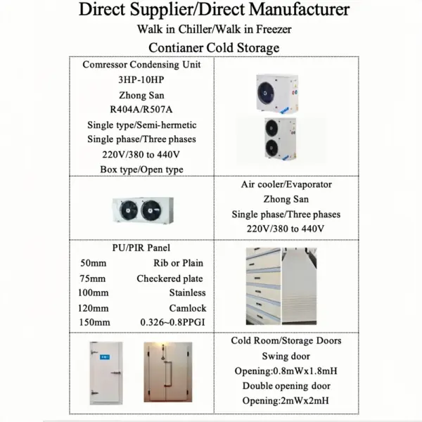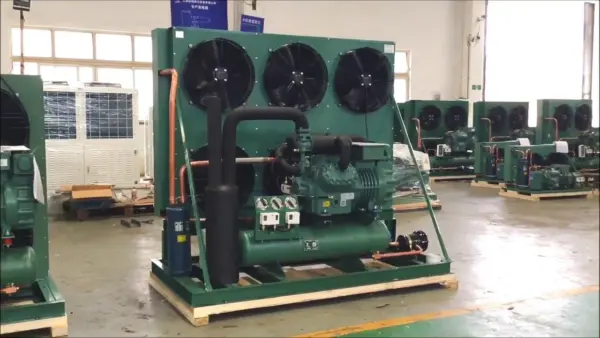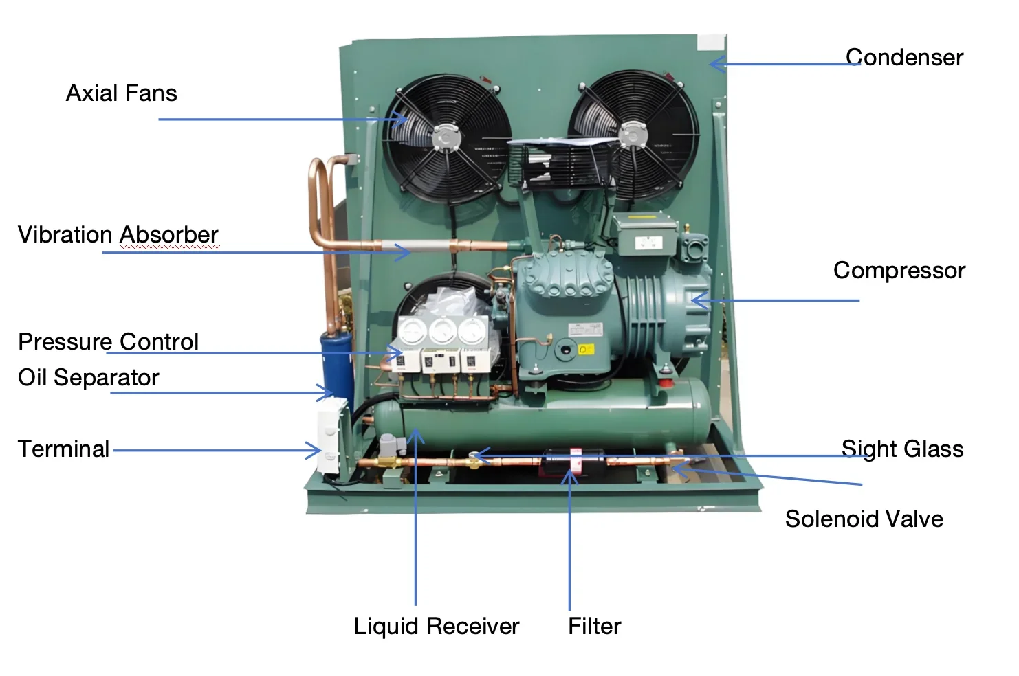 Condensing unit is mainly used for refrigerating flowers, vegetables, fruits, meat, eggs and milk and seafood products. Slaughterhouses, cold stores, food and beverage factories, farms, food stores.