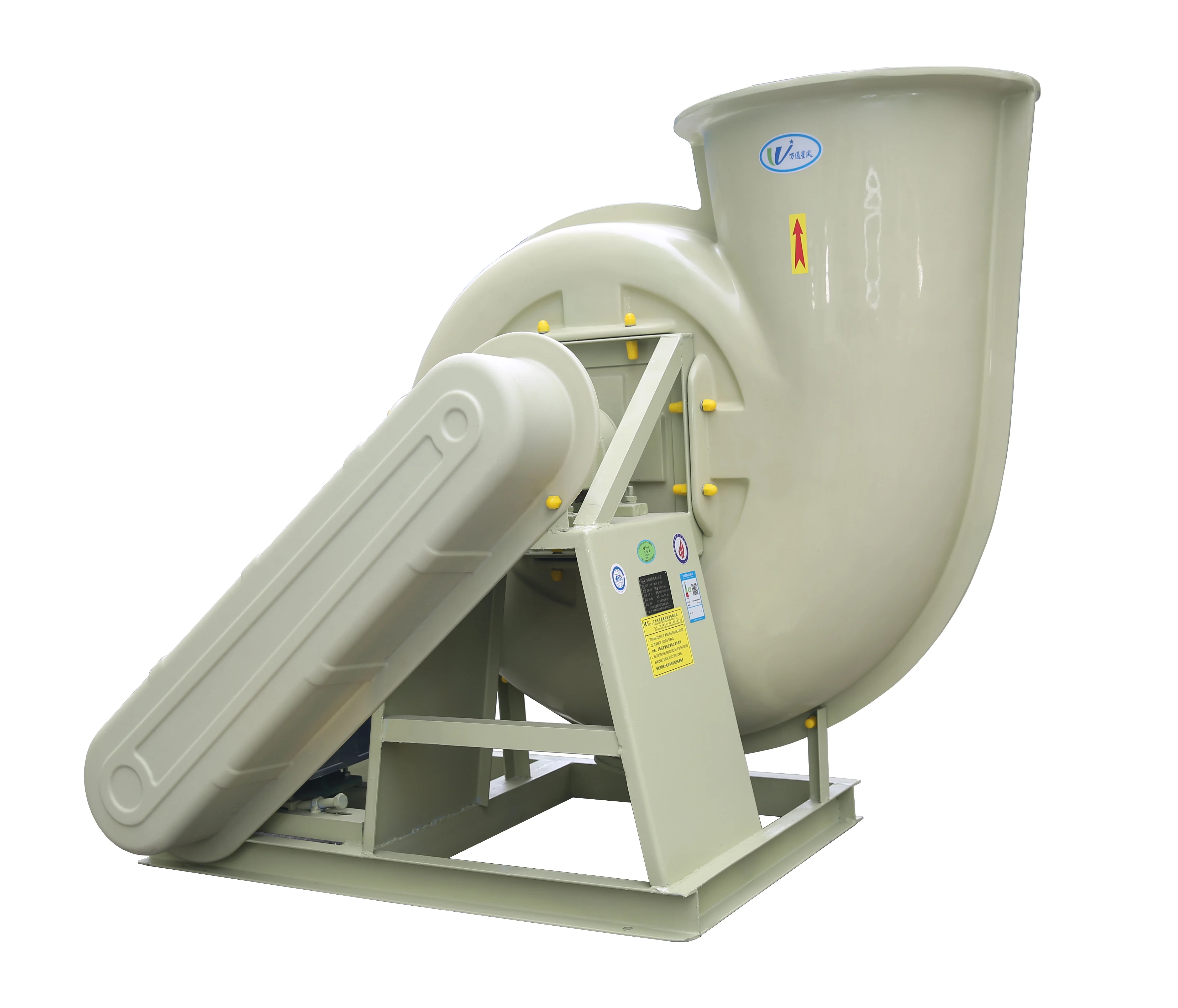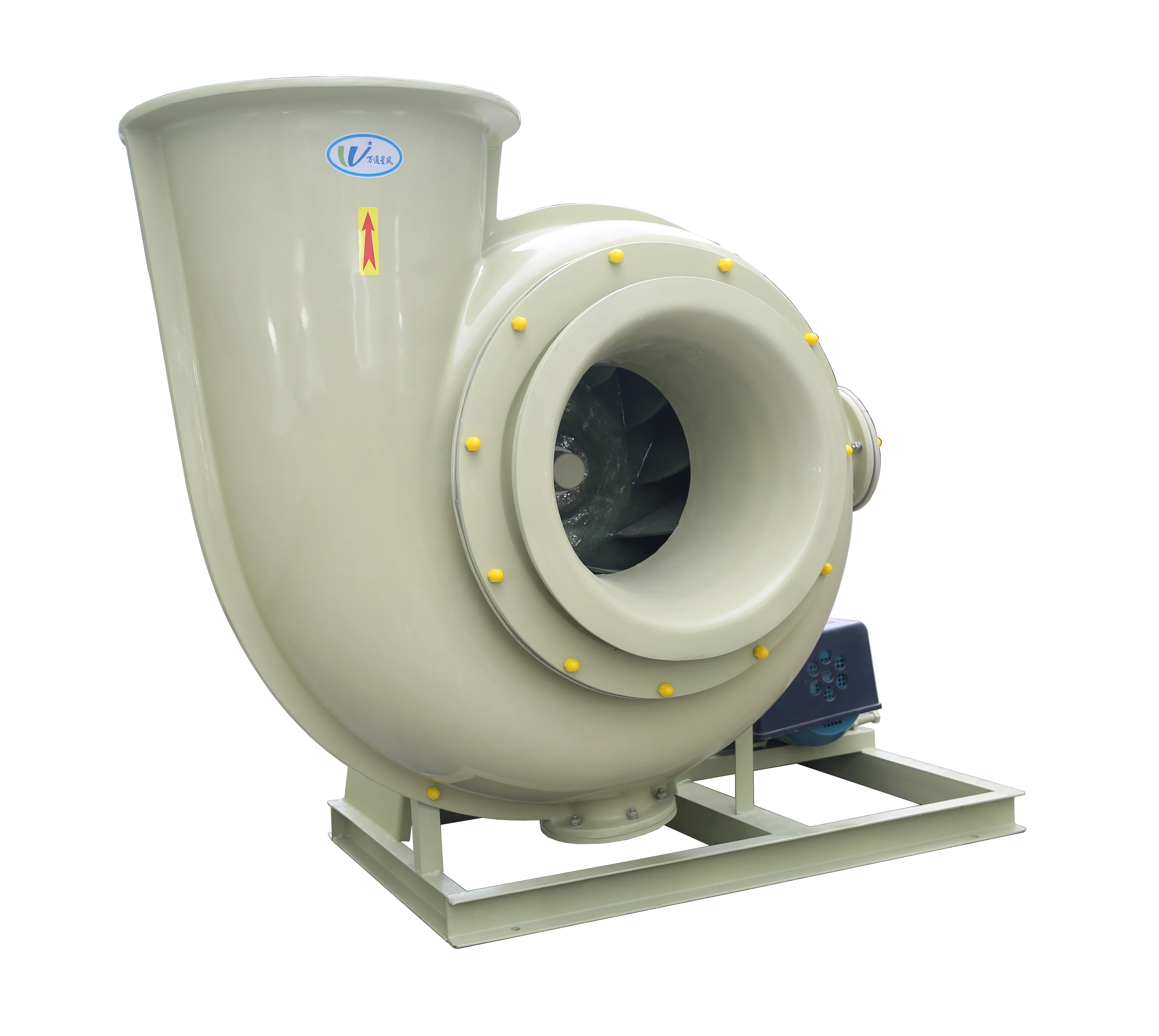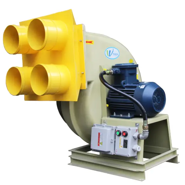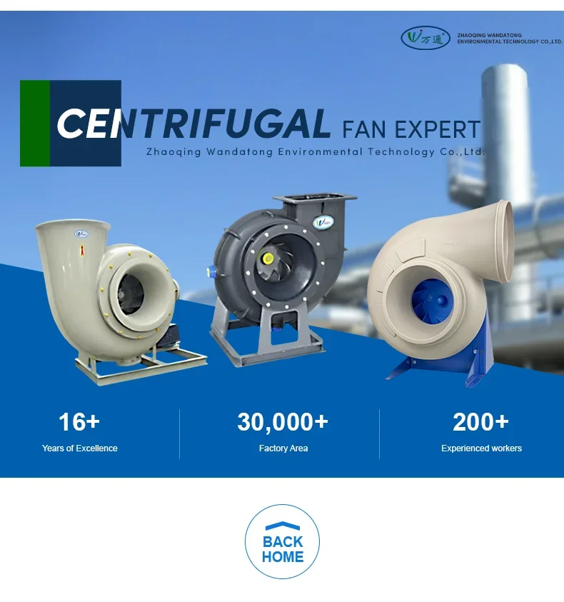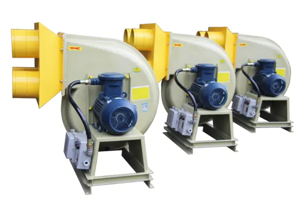 The F4-72 type FRP centrifugal fan is made of glass fiber and resin molding withreference to the performance parameters of the metal 4-72 type fan. The series of fans cantransport corrosive gases containing acid and alkali components and chemical componentsThe aas is not allowed to contain viscous substances, dust and hard particles is less than orequal to 150mg/m’, the gas temperature are less than 80, the relative humidity is less than100%. This series of fans is characterized by high strength, light weight, no ageing, goodcorrosion resistance, low noise and smooth operation. it is an ideal universal anti-corrosionblower, This series of fans are widely used in chemical. electroplating, oxidation, powerplants, laboratory, circuit board, environmental protection equipment and other sitescontaining corrosive gases. BF4-72 type glass FRP explosion-proof centrifugal fan is made from EXdl or EXdll classA and B grade explosion-proof isolation motor according to the customer’s use conditions. ltcan transport inflammable and explosive volatile gases including methane, ethane, propane.styrene, toluene, xylene, carbon monoxide, acetic acid, kerosene, gasoline and furan. Theperformance parameters and installation dimensions are consistent with the F4-72 type FRPcentrifugal fan.