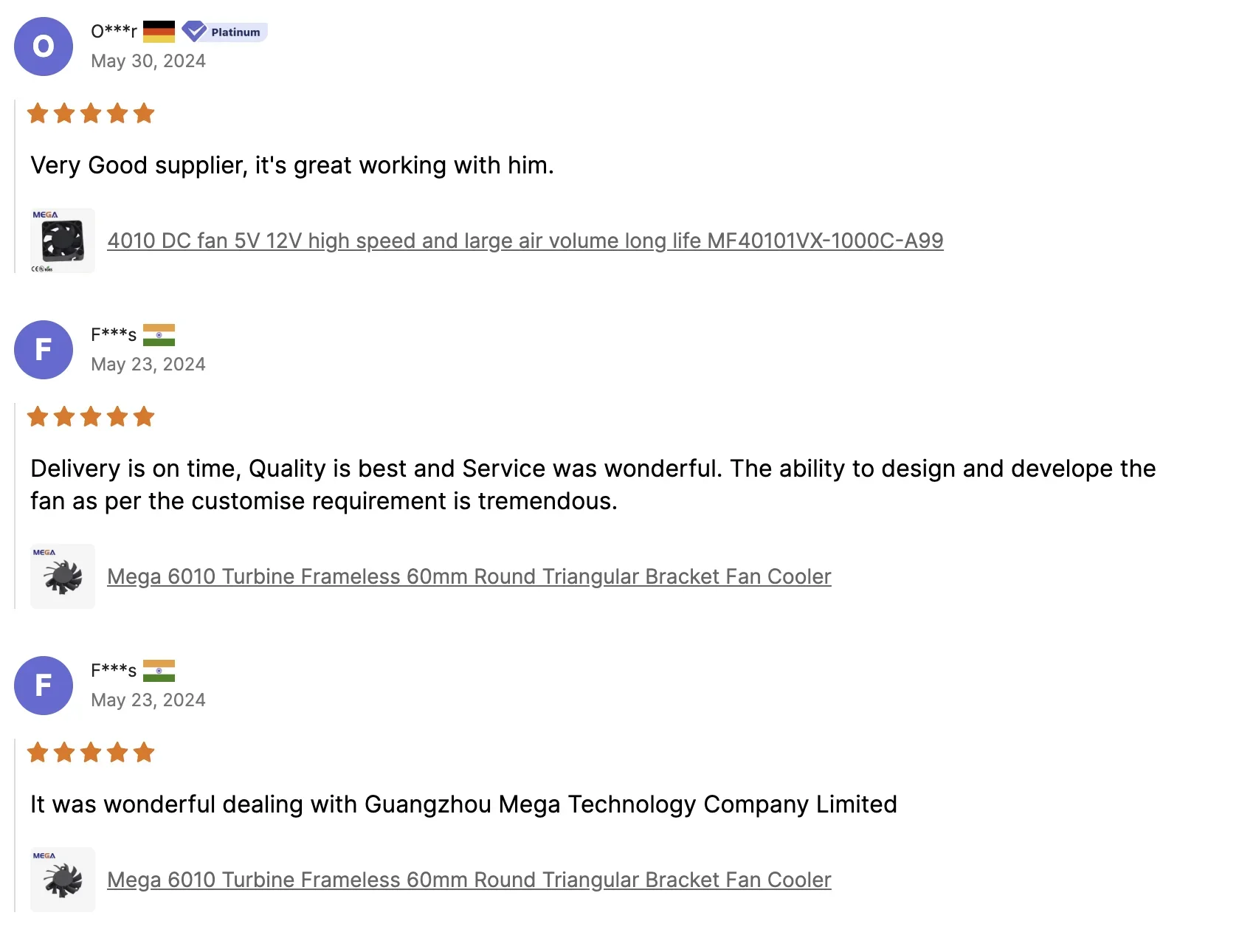 * Excellent Product Performance * Prompt Delivery