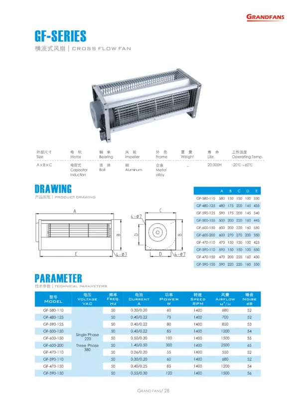 Ningbo Grand Fans Co.,Ltd, was founded in 2001. The company is located in the Beilun, Ningbo. Our main products are cross flow fan,centrifugal fan and axial fan. Applicable to the Ventilation and heat dissipation, Heating ventilation and Refrigeration. Well established with a full range of manufacturing,testing equipment and facilities. The company certified ISO9001, the main products are certified by CCC, CE.