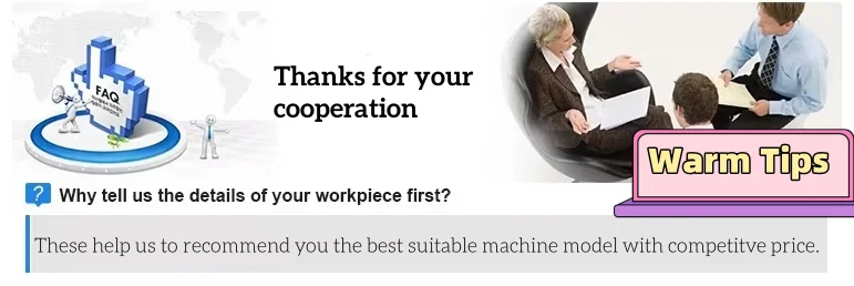 Before sales Our professional technical recommend the right machine,and can also customized special machine as customer’s requirement and special parts. Sales following During machine production, watching the machine quality and testing machine.and take pictures or make video for customer checking. After Sales Machine have one year quality warranty ,0ne year free replacement spare parts ( 1 set of spare parts free for your stock, in case it need replacement). Supply pictures or video help customer to install machine. Provide long-terms technical support.