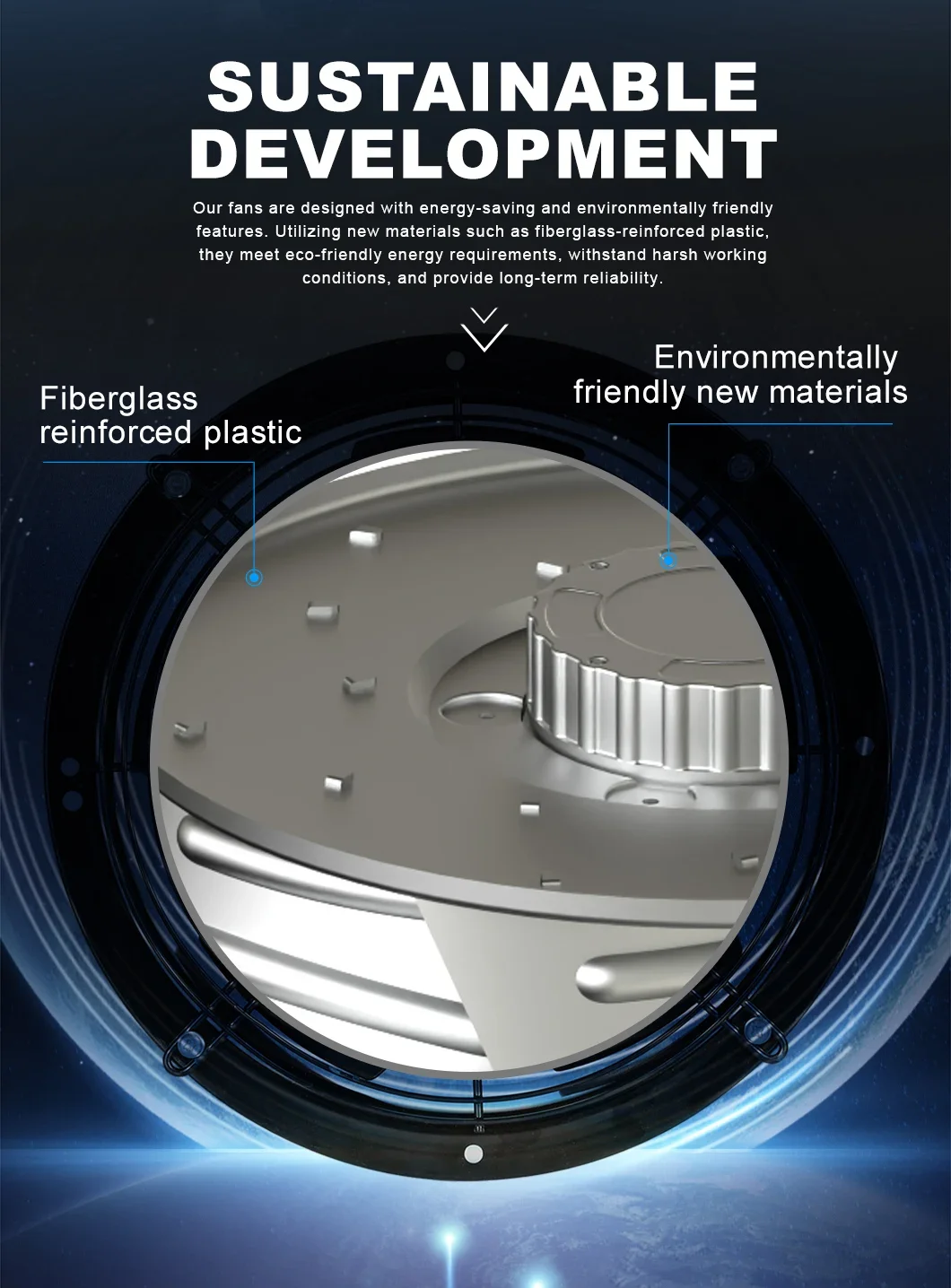 4. Sustainable Development: Our fans are designed with energy-saving and environmentally friendly features. Utilizing new materials such as fiberglass-reinforced plastic, they meet eco-friendly energy requirements, withstand harsh working conditions, and provide long-term reliability.