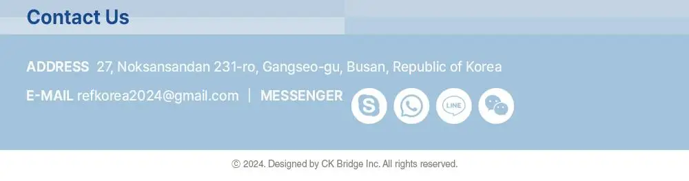 Customized Units: We specialize in manufacturing customized units tailored to the specific requirements of our clients. Each unit undergoes meticulous construction to ensure optimal performance and durability across various applications. Secure Packaging for Transit: Once your unit is completed, we take utmost care in securely packaging it for transit. Our team employs industry-standard packaging materials and techniques to protect your unit from potential damage during shipping. Containerized Shipment: Ensuring the safe and efficient transportation of your unit is paramount to us. Therefore, we utilize containerized shipment methods, carefully loading each unit into shipping containers to shield it from external factors and maintain its integrity during transit. Global Shipping Services: Whether you’re located domestically or internationally, we offer comprehensive shipping services to meet your needs. Leveraging our extensive network of shipping partners, we can deliver units to virtually any destination worldwide. Tracking and Customer Support: Throughout the shipping process, we provide real-time tracking updates so you can monitor the progress of your shipment. Additionally, our dedicated customer support team is available to address any inquiries or concerns you may have regarding your shipment. At Ref.KOREA, we prioritize the safe and timely delivery of your unit. With our commitment to excellence in packaging and shipping, you can trust that your order will arrive in pristine condition, ready to meet your requirements.