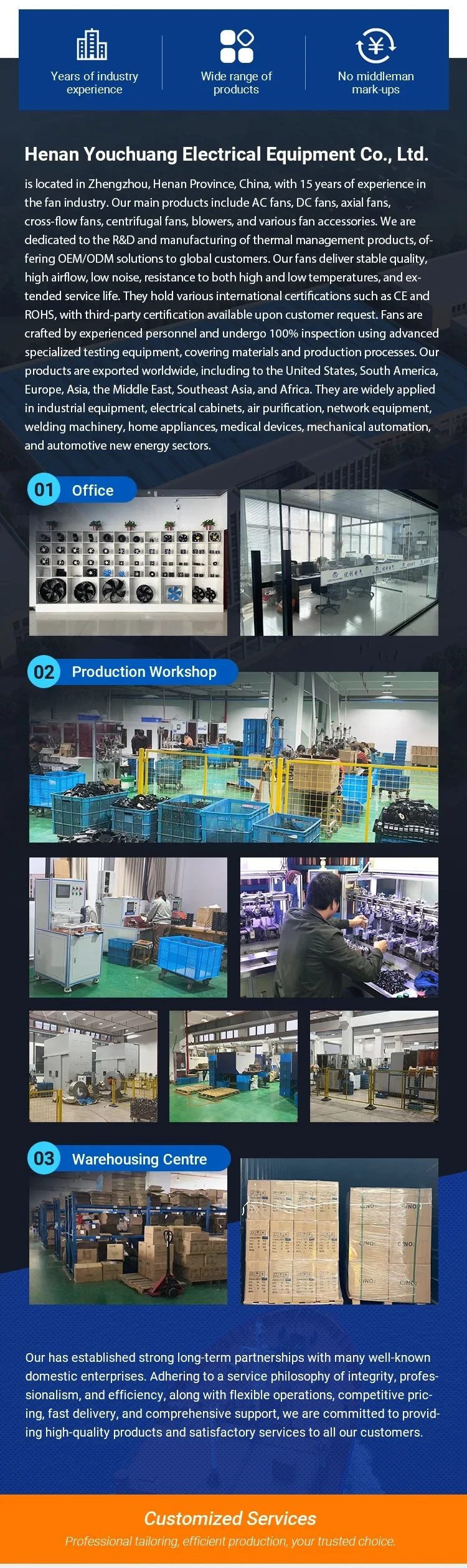 Telecommunications industry, industrial equipment, electrical cabinets, air purification, network equipment, welding