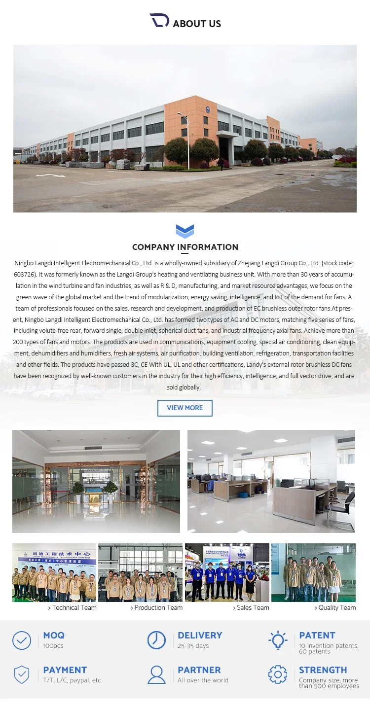 Q:Are you a manufacturer ? A:Yes ,We are .Langdi is a professional fan motor manufacturer, listed in 2016. Q:Do you have the centification ? A:Yes ,We have CE ,CCC RoHS and ETL . Q:What is the MOQ ? A:100 Pcs. Q: How can I get a sample to check your quality? A:After price confirmed, you can require for samples to check quality. If you need the samples, we will charge for the sample cost. But the sample cost can be refundable when your quantity of first order is above the MOQ. Q: What is your main market? A:Southeast Asia ,EU ,East North Ameraica ,South Africa