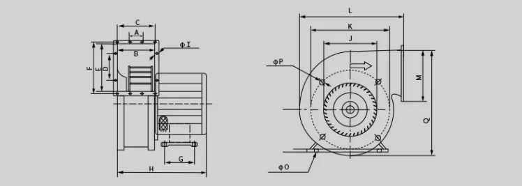The FLJ series fan is composed of a single-phase asynchronous motor or a three-phase asynchronous motor, a volute, an impeller and mounting brackets, which is characterized by compact structure, light weight, small size, high efficiency, large air flow, and high air pressure.