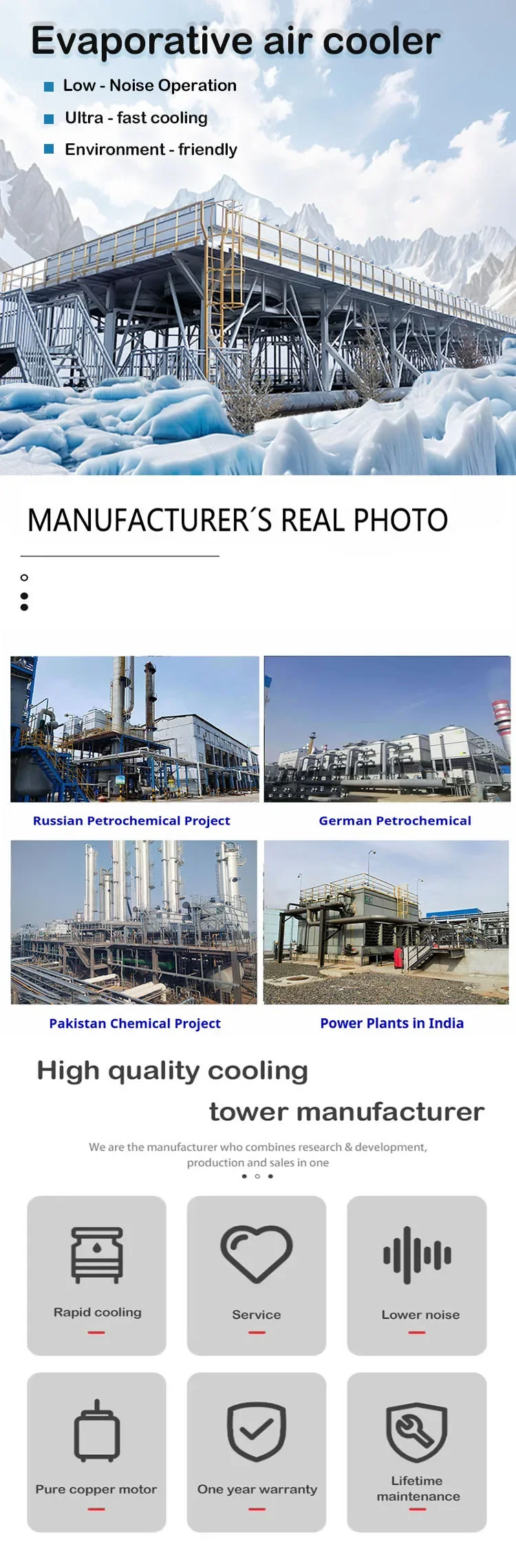 For induction furnace, quench bath,tan, central air-conditioning,hydraulic system, air compressor and so on.
