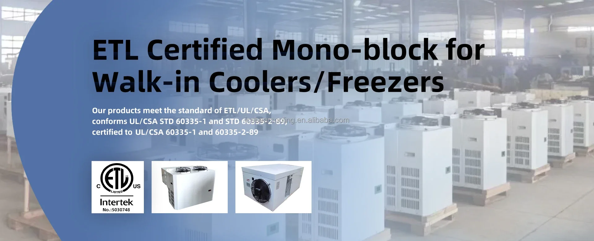 Walk-in cooler, walk-in freezer, monoblock unit, wall-mounted refrigeration unit, ETL certified refrigeration, cold room cooling unit, plug and play monoblock, US Canada cold room unit, freezer refrigeration system, cooler refrigeration system, Dixell controller refrigeration, Emerson cooling technology.walk in cooler refrigeration, ETL listed monoblock, US restaurant freezer unit, plug and play refrigeration US, UL 60335-2-89,UL 60335-2-1, cooling unit, commercial refrigeration unit, R290 compliant refrigeration, American walk-in freezer system, energy efficient, monoblock US,CSA compliant refrigeration unit, ETL certified freezer Canada, walk in cooler Canada, Canadian cold room unit, CAN/CSA-C22.2 refrigeration, monoblock freezer Canada, plug and play cooler unit Canada, low ambient monoblock for Canada, R290 freezer Canada,Restaurant walk-in cooler,Restaurant walk-in freezer,Convenience store beer cooler’Meat shop freezer,Ice cream freezer room,Ghost kitchen cold rooms,Food truck storage rooms,Small warehouse cold rooms,Restaurant cooler/freezer rooms,Seafood storage on coastal areas,Meat shops & butcher cold rooms,Walk-in dairy storage,Frozen vegetable warehouses,Convenience store cold rooms,Ice cream & gelato freezer rooms,Health-care & vaccine storage rooms
