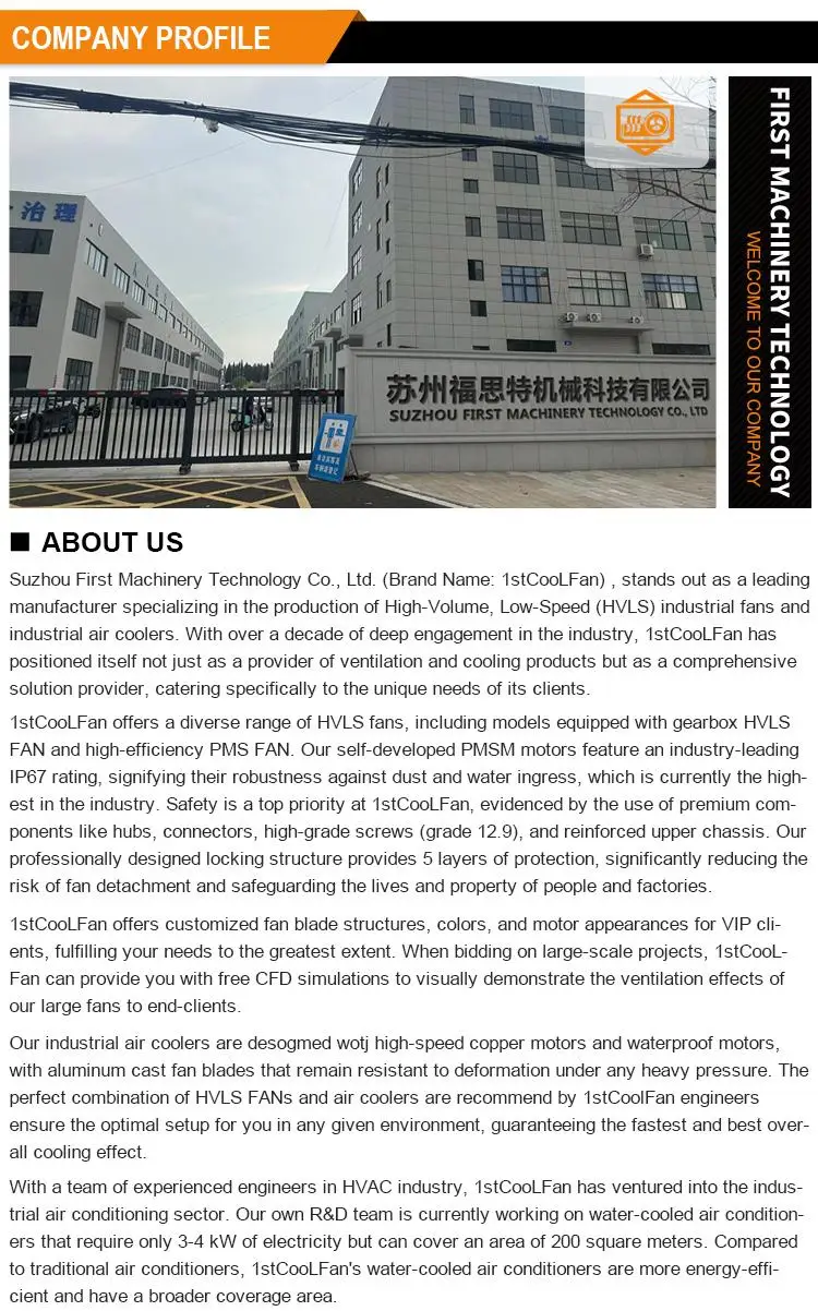 A2:We are the professional factory which provide the whole cooling solution for large area including HVLS FAN, INDUSTRIAL AIRCOOLER