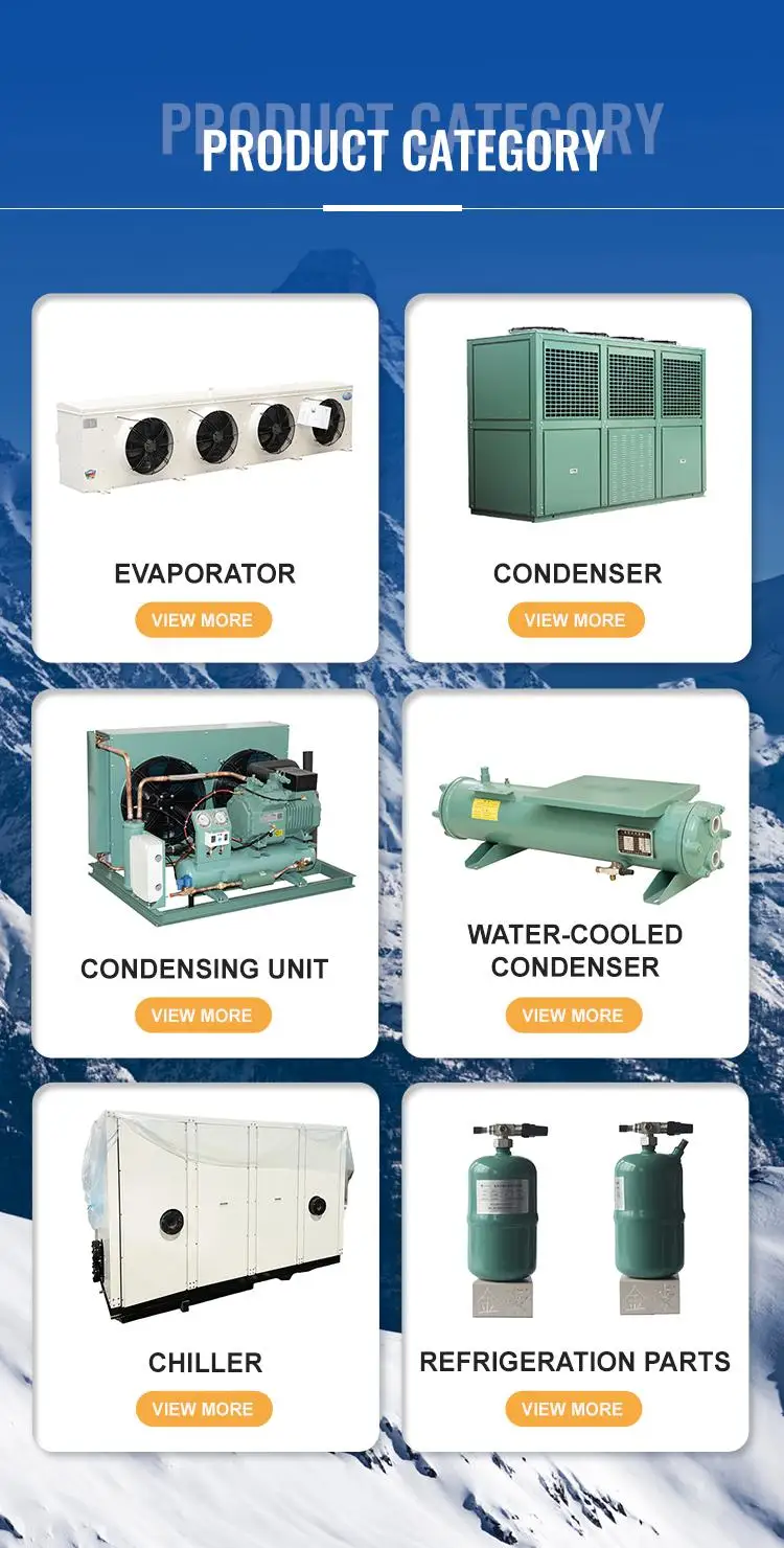 A2: We supply a full range of refrigeration products — condensing units, evaporators, condensers, refrigeration parts.