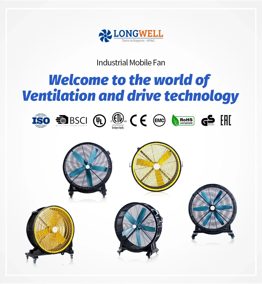 LONGWELL Industrial Popular Drum Fan Large Air Volume Fan 220v Permanent Magnet Motor Industrial Mobile Fans