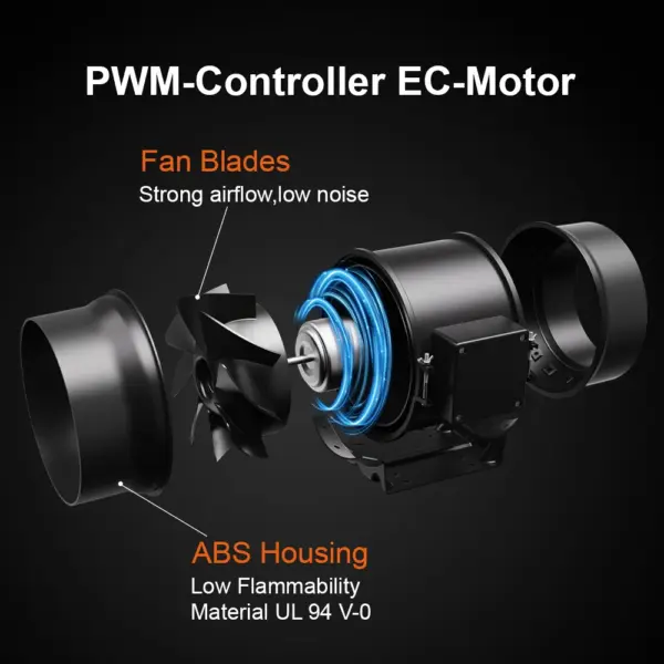 【Powerful Inline Fan】: Mixed flow design combined with a EC motor ensure truly energy efficient, with only 62 watts of power but gives a strong airflow up to 402 CFM. Lightweight ABS blades reduce the airflow resistance, add airflow by 40%. 【Temperature Regulation】: Proper ventilation helps maintain optimal temperatures within the grow space. Plants have specific temperature requirements for growth and flowering. Ventilation systems can expel hot air generated by lights or equipment and bring in cooler air from outside or from a separate cooling system, helping to regulate temperatures. 【Humidity Control】: Controlling humidity levels is essential for preventing mold, mildew, and other moisture-related issues. Ventilation systems can remove excess moisture from the air, especially during the flowering stage when plants are more susceptible to mold. 【Odor Control】: Some plants, can produce strong odors during flowering. Ventilation systems equipped with carbon filters can help remove these odors, preventing them from escaping the grow room and causing disturbances.